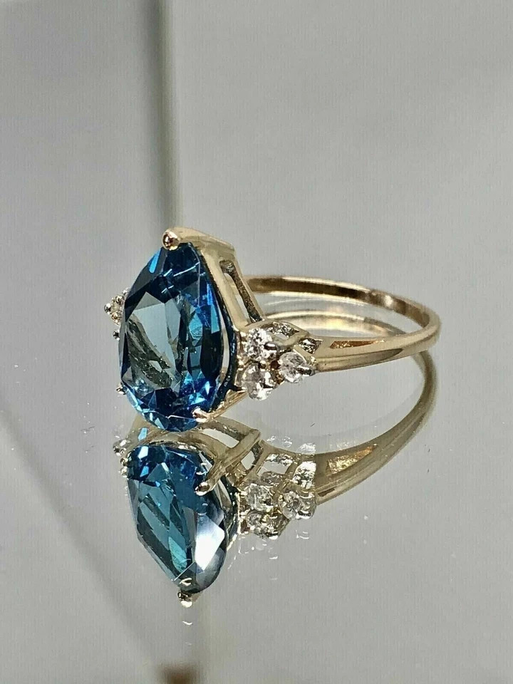 2.55 Ct Oval Cut London Blue Topaz Halo Woman Ring 14K Solid Yellow Gold