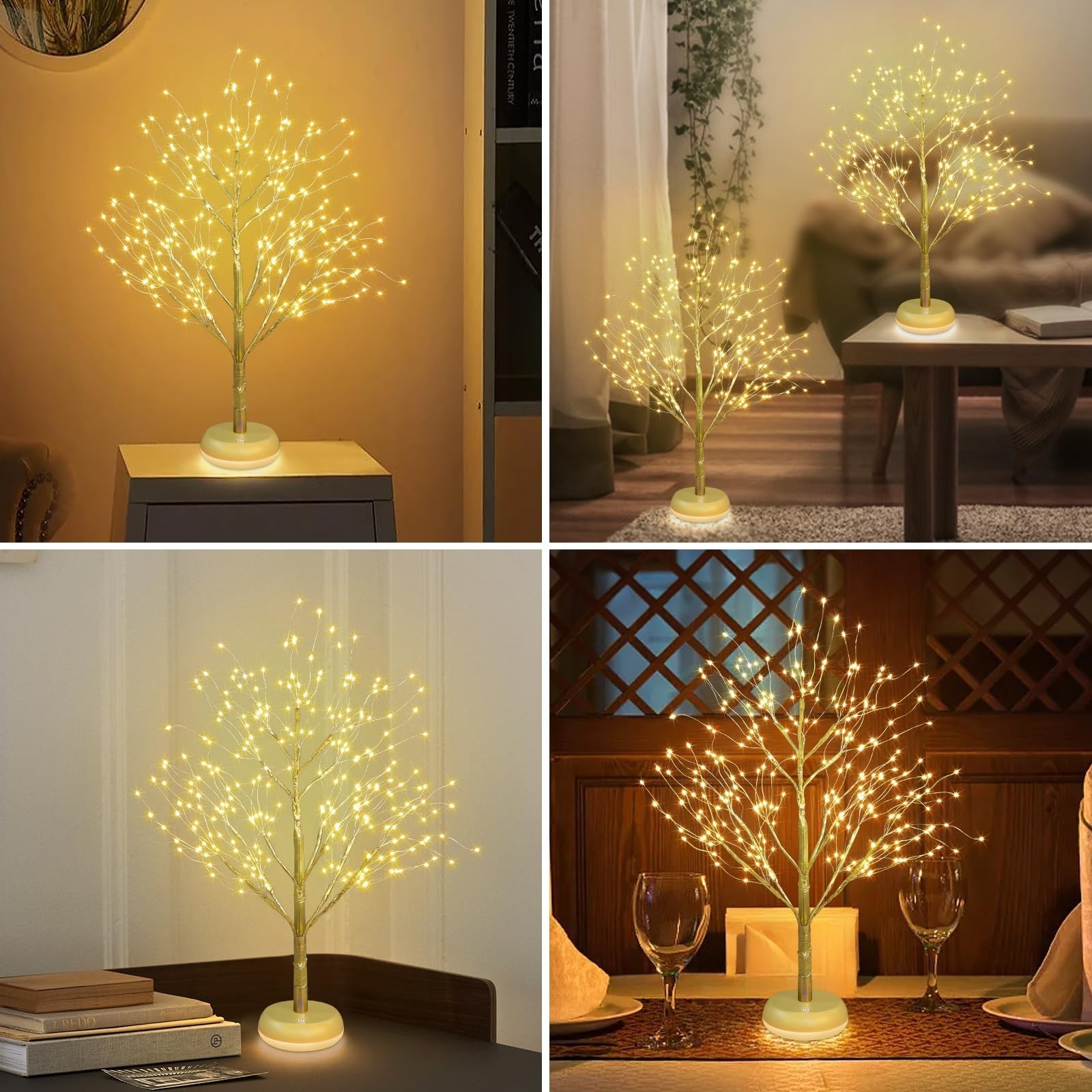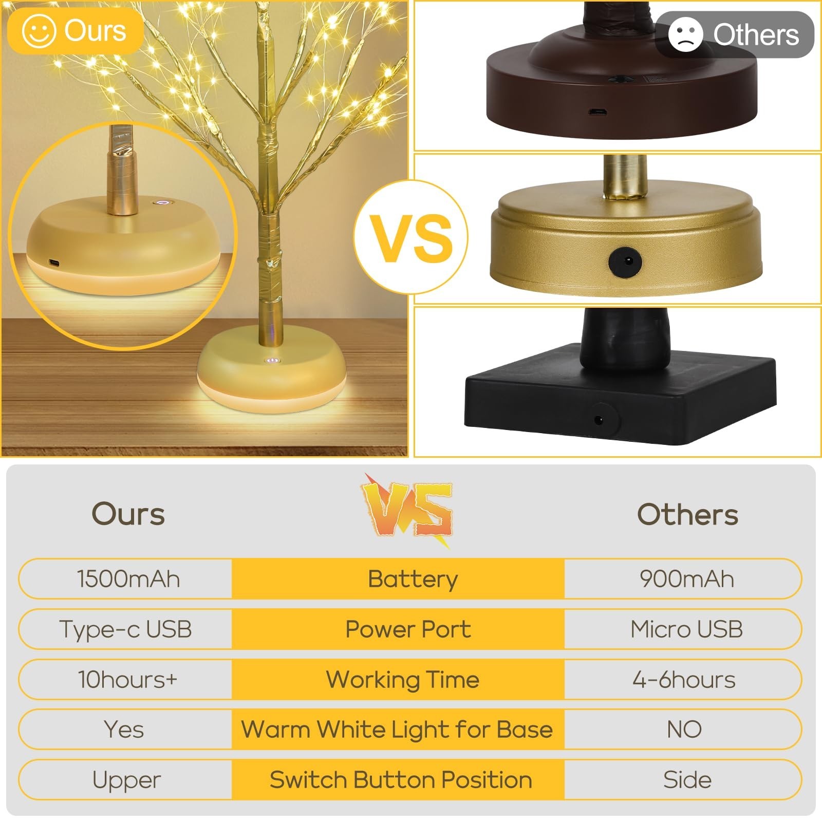 Lighted Artificial Trees for Christmas Decorations, 255 LED 2FT Mini Christmas Tree with Upgraded Glowing Base, Type-C Powered Tabletop Tree Lights for Bedroom Aesthetic Living Room Wedding Home Decor Product Details Finish Type: Glossy Base Material: Lighted Base Product Dimensions: 5"D x 5"W x 22"H Item Weight: 0.75 Pounds Lamp Type: Table Lamp Finish Type: Glossy Base Material: Lighted Base Product Dimensions: 5"D x 5"W x 22"H Item Weight: 0.75 Pounds Lamp Type: Table Lamp Shade Color: Gold Shade Material: Linen Switch Type: Touch Style: Lighting Brand: babadeda Color: 255 Led 2ft Special Feature: Lighting Light Source Type: LED Material: Plastic Room Type: Bedroom, Living Room Recommended Uses For Product: home decor Power Source: Corded Electric Shape: Lighted Artificial Trees Number of Light Sources: 255 Connectivity Technology: USB Included Components: LED Tree Is Waterproof: false Bulb Shape Size: G25 Mounting Type: Tabletop Number of Items: 1 Lighting Method: Adjustable Control Method: Touch Indoor/Outdoor Usage: Indoor Specific Uses For Product: General purpose Water Resistance Level: Not Water Resistant Installation Type: Freestanding Number of Pieces: 1 Is Cordless?: No Assembly Required: Yes Manufacturer: babadeda Item Weight: 12 ounces Item model number: G-ZSSD01-WW-FB Finish types: Glossy Batteries required: Yes Tabletop Tree LampOverall height of 2ft with a 4.7 inch x 4.7 inch base, 255 LED light,in total 0.75LB, warm white. On this tree light can output very bright and beautiful lighting effect, perfect for christmas decorations, fireplace decor, home decorations. Type-C Charging PortYou can easily charge this table lamp warm lights at any time from your computer, power bank or other USB port through the type-C with charging cable, it's convenient and energy-saving. Three Lighting ModesThe whole tree lamp lighting, the base ambient lighting, and the twinkling tree branch lighting, three different light adjustment modes give you a brand new atmosphere experience, which can be work for over 12 hours. Upgraded Base with Ambient LightThe bonsai tree table lamp base is paired with the 2023 newest designed ambient light, the switch is designed on the top, which can be controlled without flipping. The bottom of base for the night light tree with anti slip pads for prevent slipping. Adjustable Tree Light BranchThe tree branch is composed of 13 golden soft twigs, you can adjusted in different shapes and sizes, or hung with cards during Christmas, Halloween, and Thanksgiving Days to DIY the desired atmosphere lighting effect you like.