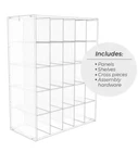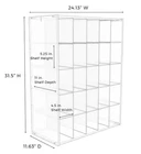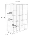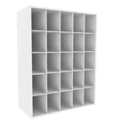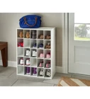Made from sturdy laminate with 25 individual cubbies, the ClosetMaid 25-Shoe Organizer provides unique opportunities for storing shoes, hobbies, toys, office supplies, and more! Features: Individual cubes provide endless storage opportunities Holds up to 25 pairs of standard sized shoes Easy to assemble with all hardware included Modern design complements any room of your home Dimensions: Overall : 31.50" H x 24.13" W x 11.63" D Individual Cubbies : 5.75" H x 4.5" W x 11" D Weight Capacity: Top of Unit : 15 lbs. Individual Cubbies : 5 lbs.