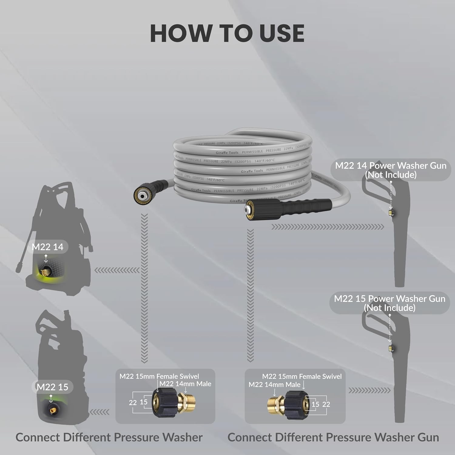 Store New Arrivals Add to Favorite View Feedback Contact Pressure Washer Hose 25FT, 3200 PSI Power Washer Hose for Replacement, Kink Resistant High Pressure Washing Hose Extension with M22-14Mm Fittings, 2 Quick Connectors Description Item model number PH-25FT-N-A Style 2 Quick Connectors Maximum Pressure 3200 Pound per Square Inch Material Polymer Item Weight 3.03 pounds Item Length 8.66 Inches Outside Diameter 0.25 Inches Product Dimensions 300"L x 0.25"W Size 25FT Pressure Replacement Hose: The power washer hose is suitable with most brands’ and models’ pressure washer accessories, for adopting standard M22 fitting craftmanship. A good choice as a replacement or extension part for your genuine hose. Prevents Kinking: Featuring a newly designed flexible structure that prevents excessive bending and keeps water flowing smoothly to ensure efficient cleaning. In addition, Updated outer material ensures pressure washer hose non-marking. Stains can be removed at ease and scratches cannot stay. Light Weight: The pressure washer hose for pressure washer is made of lightweight material, make it more convenient to carry when outer-working. Just carry it on your hand and enjoy your work with this pressure hose. Fully Equipped: The package contains a 25 ft power washer hose and 2 Quick Connectors to deal with most cases. Other two adapter set (M22 14mm male swivel) is used for connect QC fittings. High Quality: This pressure washer hose is made of high-strength hybrid polymer material, which can withstand up to 3200 psi of pressure. Protective case at both ends can protect pressure hose from bending. Product Description 1 Heavy Duty Pressure Hose 2 Standard M22 Fittings 3 Protect Sleeve 4 All Weather Usage 1 WEAR-RESISTANT 2 EXTREMELY FLEXIBLE 3 DURABLE MATERIAL ABOUT US We offer the best prices around on high quality products. Our E-store includes media such as books, movies, music and games while offering electronics, toys, sporting apparel, clothing, tools, general home, garden items and more. SHIPPING We are always working hard to ensure your package arrives as soon as possible. Please understand that some factors like weather, high postal traffic, and the performance of shipping companies are outside of our control. We offer free shipping to the lower 48 states and ship within 2 business days of payment, usually sooner. We do not accept P.O. Boxes. Please provide a physical address. RETURNS We offer a 30-Day Return Policy on items which you are not completely satisfied with. You have the option for a full-refund or an exchange of the item. No returns are available on items shipped outside of the USA. PAYMENT We accept PayPal. CONTACT US This page content is yet to come Please ad us to your favorite seller and visit again later Thank You CUSTOMER SATISFACTION We try our very best to make sure every customer is completely satisfied. If there's a problem, message us! We're happy to help.