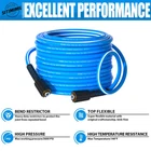 M22-14mm UNIVERSAL FITTING:power wash hose is suitable with most brands and models pressurewasher accessories, for adopting standard M22-14mm ftting craftmanship. A goodchoice as a or extension part for your genuine hose. BRASS CONNECTOR:Higher solid brass with better Rust-Resistance. TOP FLEXIBILITY:Based on Industry Engineering, made of creative high-quality and fantastic flexible material. KinK Resistant, easy to carry, drag, roll up and , will bring a lot of convenience to your pressure washing work. LONG SERVICE LIFE:All benefts from high strength hybrid polymer material inside, this pressure washing hose will not easily blowout or leak even after hundreds of times work in daily life if only used under pressure (lower than 3600 PSI): Protective case at both end can protect pressure hose from bending and quarantee a longer use time. QUICK CONNECT&EXTENSION HOSE KIT:Easy load/unload and extension with adapter kits, come with 3/8" quick connect and M22 extension coupler, make your setup and storage more flexible and easy to reach, lf you are not able to connect the power washer hose . please us and we have a professional service center waiting for reply.