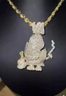 2.5Inch Round Cut Moissanite Unisex Charm Cartoon Pendant 14K Yellow Gold Plated