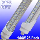 FAST DELIVERY - Ship from New Jersey or Los Angeles Warehouse via FedEx , 3-7 Days Delivered Your Door . SCIENTIFIC DESIGN - 8Ft LED Shop Lights Fixture is Made of 6500K Cold White SMD2835 LED Chip ,Plastic Clear Cover , Aluminum Bracket Housing ,and AC85-277V Constant Current Driver . It can work in -68F to 120F Temperature Conditions EASY INSTALLATION - The Integrated Tube Fixture Can be Install on Wall or Ceiling ,Easily Replace Traditional Fluorescent Tube Bulb . Plug and Play , Free Accessories (Power Cords, Connector , Extension Cords , Clip and Screw ) Come with Tube Lights Together WIDE APPLICATION - Linkable 8Ft Bulbs Widely Used in Garage Ceiling , Barbershop , Schools, Hospitals Basement , Factory Warehouses , Supermarkets Cooler Door , Offices, Shops,Hotels, etc 25Pack T8 8Ft Rotatable R17D HO Led Tube Light Bulbs 144W Led Shop Light 6500K 【Rotate Cap & Swivel End】 Easy Adjust rotated Lighting Direction within 180 degree after Installation 【No RF & FM Interference】LED Driver have passed Electromagnetic Magnetic Compatibility EMC tests,No cause EMI ,No longer subject to any RF & FM jamming. Never interfering with the signal of your garage roller shutter door,No make noise when you listen radio 【Easy to Install】Just simply bypass the ballast and connection AC85-277V AC power . Not compatible with single-ended powered sockets 【Wide Application】 - 8Ft 144W V Shaped R17D HO LED Bulb fitted to replace traditional F96T12 T8 T10 T12 fluorescent bulbs. Widely used in Garage,supermarkets, offices , convenience stores .