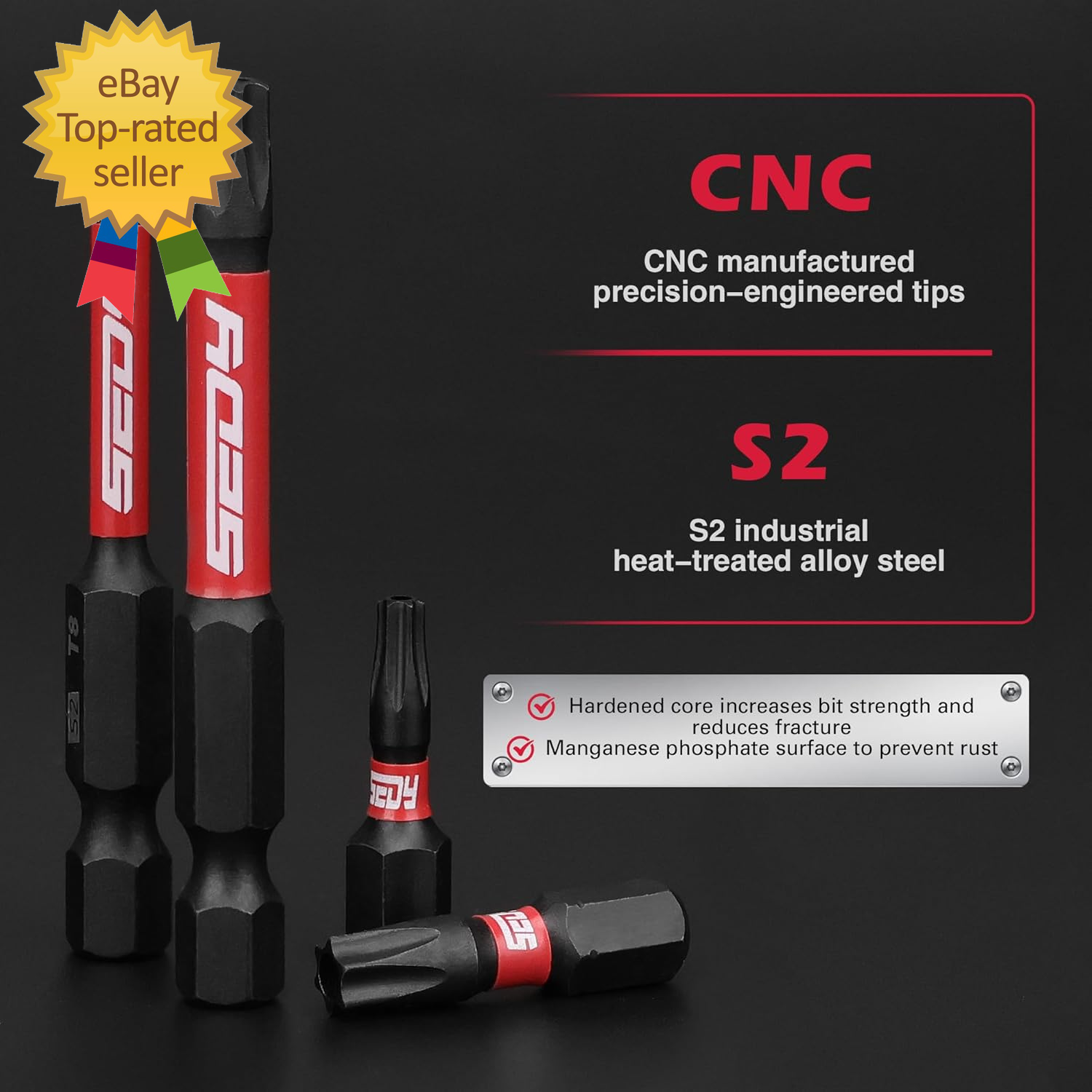 Store New Arrivals Add to Favorite View Feedback Contact 25-Piece Torx Bit Set, 1''&2.5'' Security Tamper Proof Torx Impact Screwdriver Bits, T5-T40 CNC Machined Magnetic Tips, S2 Steel Star Bit, High Torque Strength Precision Tools with Storage Box Description Item model number 84027 Batteries Required? No Finish Polished Number of Pieces 25 Color Black Material S2 Steel Country of Origin China Compatible Fastener Range 1 inches Drive System Torx Item Weight 1.01 pounds Head Style Torx Batteries Included? No Size 1" and 2.5" Finish Type Polished Package Dimensions 4.25 x 3.07 x 0.67 inches Included Components 12 Short Torx Bits, 1 Quick Change Bit Holder, 12 Long Torx Bits DURABLE CONSTRUCTION - Our 25-piece Impact Torx Bit Set features S2 alloy steel construction with a hardened core, ensuring longevity and durability for your most demanding tasks. The precision CNC-machined tips guarantee a perfect fit for your screws and fasteners. EXTENDED LIFE - Designed with a unique torsion zone, these impact screwdriver bits can absorb torque peaks, preventing breakage and extending the bit's life expectancy by up to 10 times compared to standard bits. Perfect for high-impact applications with drills and drivers. MAGNETIC CONVENIENCE - The set includes a 2.5" magnetic impact bit holder, making it easy to pick up and secure screws in tight spaces. The magnetism remains strong even after multiple uses, providing reliable performance for every project. VERSATILE USE - Ideal for home repairs, automotive work, woodworking, and more, this tamper proof star bit set is a versatile addition to any toolkit. The set includes both 1" and 2.5" long bits, catering to various screw driving applications and ensuring you have the right tool for the job. RUST RESISTANCE - High-quality surface finish provides full protection against rust and corrosion, enhancing the durability and lifespan of these precision tools. The bits are clearly labeled for quick identification, stored in a convenient and organized box for easy access. Product Description ABOUT US We offer the best prices around on high quality products. Our E-store includes media such as books, movies, music and games while offering electronics, toys, sporting apparel, clothing, tools, general home, garden items and more. SHIPPING We are always working hard to ensure your package arrives as soon as possible. Please understand that some factors like weather, high postal traffic, and the performance of shipping companies are outside of our control. We offer free shipping to the lower 48 states and ship within 2 business days of payment, usually sooner. We do not accept P.O. Boxes. Please provide a physical address. For shipping outside of the continental USA, we only use eBay's Global Shipping Program. The item is shipped to IL and then sent to the rest of the world. International customers are responsible for all duties and taxes. Continue to 'check out' to calculate costs for shipping the item to your country. Messages regarding eBay's Global Shipping Program MUST be directed at eBay EXCLUSIVELY. RETURNS We do not accept returns under normal circumstances. However, we will gladly consider a return if the item is received broken or if the wrong size is sent to you. In all other cases, returns will not be accepted. CUSTOMER SATISFACTION We try our very best to make sure every customer is completely satisfied. If there's a problem, message us! We're happy to help.