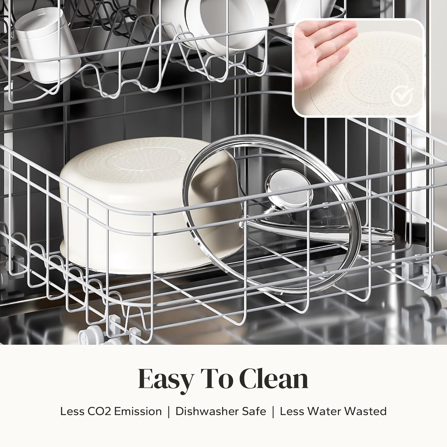 2.5QT SAUCE PAN:This 7"cooking pot perfect for 1-2 servings of sauces, soups, pasta, or oatmeal. Space-saving design fits all stovetops and stores easily in small kitchens CERAMIC NONSTICK COATING (PFAS/PFOA-FREE):Healthy cooking with minimal oil. Scratch-resistant ceramic surface ensures easy cleanup and long-lasting performance. Enjoy worry-free cooking with ceramic pot's toxin-free coating OVEN & DISHWASHER SAFE UP TO 842°F:Stainless steel handles stay cool on all stovetops and withstand high oven heat, transforming these pots into versatile oven-to-table cookware. Dishwasher-safe for quick cleanup after cooking EVEN-HEAT BASE FOR PRECISION COOKING:Thickened aluminum core prevents warping and distributes heat evenly, ideal for simmering sauces or melting cheese without burning SHATTER-PROOF GLASS LID:Vented design reduces boil-overs while monitoring cooking progress. Glass lid locks in moisture for tender results Product Description Redchef Capacity Optional Meet all your needs. Food slides off the surface effortlessly, reducing the need for excessive oil or butter, and making cooking and flipping food more convenient. It's time to throw away all your PTFE toxic nonstick cookware! Ceramic Pot for Cooking Easy to Clean & Dishwasher Safe The smooth and non-porous surface of our ceramic coating (inside and outside) makes it easy to clean. Food residue and stains can be easily wiped off with a gentle scrub or a soft sponge, requiring minimal effort and saving you time in the kitchen. Long Lasting Ceramic Coating Nonstick Pro. Allow for rapid heat transfer and long-time use, saves energy and time, satisfying cookware like induction, gas, ceramic, electric, halogen & solid fuel cookers, even suitable for Oven. 1 Oven Safe 2 Dishwasher Safe 3 Induction Safe Ensuring a safe and healthy cooking experience. 1 Ceramic Coating 2 Stainless Steel Handle 3 Glass Lid 5 Flat Alloy Base Redchef Nonstick Ceramic Cooking Pan Add to Cart Add to Cart Add to Cart Add to Cart Add to Cart Add to Cart Customer Reviews 4.8 out of 5 stars 28 4.8 out of 5 stars 28 4.8 out of 5 stars 28 4.8 out of 5 stars 28 4.6 out of 5 stars 68 4.3 out of 5 stars 1,065 4.5 out of 5 stars 58 Price $49.99 $ 49 . 99 $59.99 $ 59 . 99 $49.99 $ 49 . 99 $59.99 $ 59 . 99 — $79.99 $ 79 . 99 $149.99 $ 149 . 99 Size 2.5QT 3.5QT 2.5QT 3.5QT 11" 8"+9.5"+11" 14 PCS Color Beige Beige Blue Beige Beige Beige Beige Material Aluminum,Stainless Steel Aluminum,Stainless Steel Aluminum,Stainless Steel Aluminum,Stainless Steel Aluminum,Stainless Steel Aluminum,Stainless Steel Aluminum,Stainless Steel Coating Ceramic Coating Ceramic Coating Ceramic Coating Ceramic Coating Ceramic Coating Ceramic Coating Ceramic Coating PFAS & PTFE PFOA Free ✔ ✔ ✔ ✔ ✔ ✔ ✔ Long-Lasting Non-stick ✔ ✔ ✔ ✔ ✔ ✔ ✔ NO TOXIC ✔ ✔ ✔ ✔ ✔ ✔ ✔ Induction Safe ✔ ✔ ✔ ✔ ✔ ✔ ✔ Dishwasher Safe ✔ ✔ ✔ ✔ ✔ ✔ ✔ Oven Safe ✔ ✔ ✔ ✔ ✔ ✔ ✔