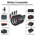 --- 22 AWG; Low capacitance balanced XLR cables with thicker conductive PE shield for strong insulation, designed specifically as xlr mic cords <4 Color Coded> --- These microphone cables with male and female connectors of 4 different color boots, easy for your team to distinguish and trace --- Lo-Z balanced XLR cable with dual shielded Hi-Fi transmission; No delay; Noiseless and lossless performance --- Soft flexible cable in black ideal microphone cables or XLR audio cables on stage --- Premium 3-pin silver plated XLR connectors of screw type for you easily unscrew to view solder points if needed, static free; Smooth plug in/out, solid lock