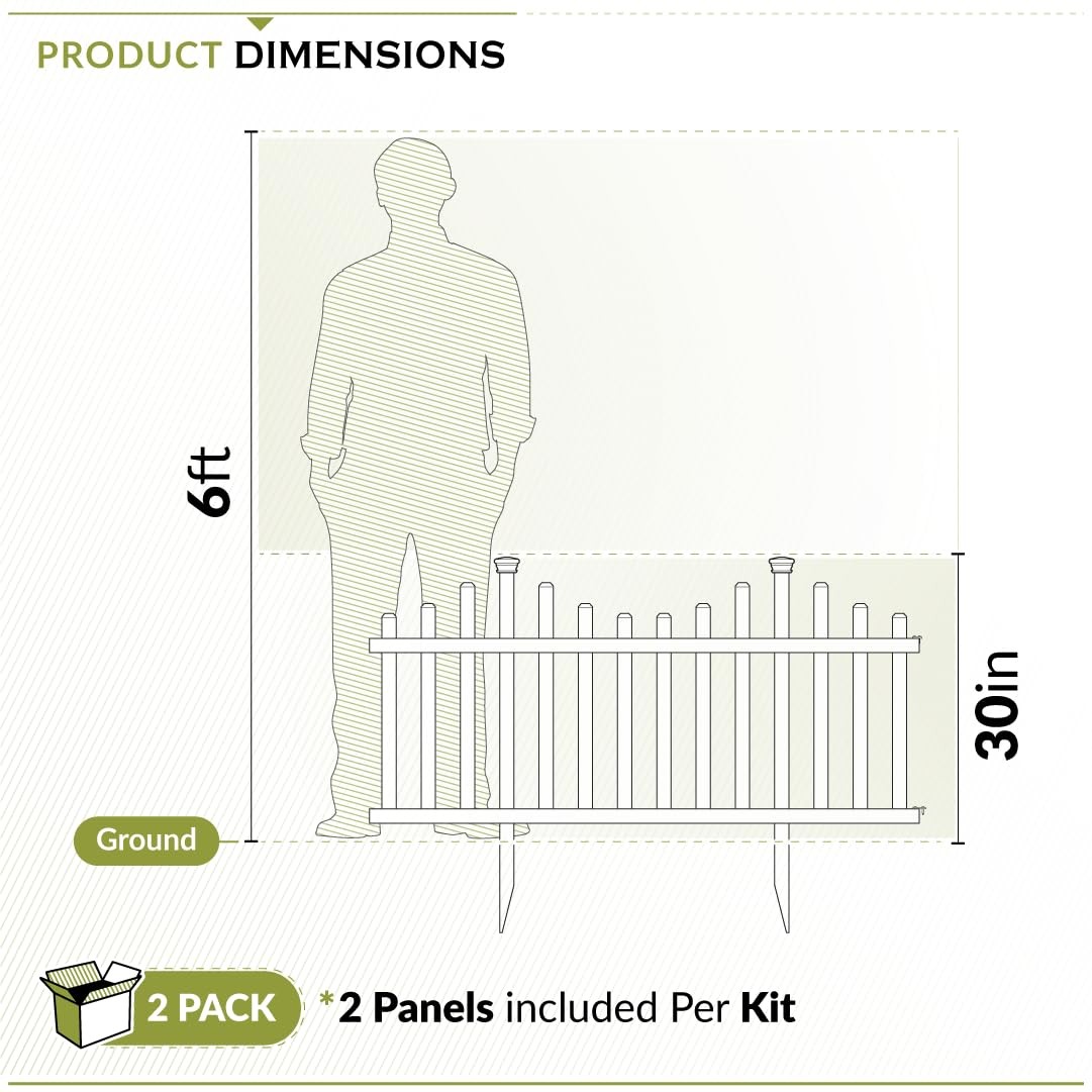 DOG FENCE: This no dig fence is great for creating an outdoor dog playpen to keep your pet contained. Have peace of mind knowing that your puppy is safe to run within the boundaries of your backyard. Ideal for small to medium sized dogs. MULTIPURPOSE GARDEN FENCE: This is the perfect garden fence border to enhance the beauty of your landscape. It's a great animal barrier to keep unwanted guests from your lawn, garden beds, and flowers. It’s also a great decorative garden or edging fence. NO DIGGING REQUIRED: Innovative no dig system saves you time and hassle KEEP CHILDREN SAFE: This is a great temporary no dig fence to create a safe outdoor play area for babies, toddlers, and children. Made from high quality PVC, rest assured that this fence will create a sturdy barrier to protect your loved ones. CUSTOMIZABLE SIZE: Each panel measures 30in H x 56.5in W and you will receive 2 panels per box for a total of 113in of fence. Purchase additional units to expand your project. If you’re looking for a compatible dog gate for this fence search ZP19028. EASY TO INSTALL: It only takes around 60 mins to assemble our fence and installation is just as easy. Using a mallet and included posts, hammer your fence into the ground. You’ll have your dog play pen or garden border created in no time! WEATHERPROOF AND DURABLE: Backed by a 10 year warranty, we stand by our dog, child, and garden fence and are confident that you will be satisfied with your garden barrier for years to come. For any issues, contact directly.