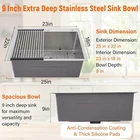 Description: 1. Material : This kitchen sink is made from high-quality 304 stainless steel, offering strength, durability, rust resistance, and easy cleaning. It features an upgraded thickness of 3mm, making it 50% thicker than most standard kitchen sinks. 2. Design: This household dishwasher sink operates quietly, thanks to thicker and softer rubber noise reduction pads. It features an X-shape flow line to prevent clogging and R10° rounded corners for easy cleaning and a modern appearance. 3. Function: Exterior dimensions are 25" x 22" with a bowl depth of 9". This stainless steel drop-in sink is deep enough to accommodate large pots, pans, and cookie sheets, while also concealing dirty dishes waiting to be loaded into the dishwasher. 4. Tip: The package includes a drop-in kitchen sink, a roll-up rack, a bottom grid, a drain assembly, mounting clips, and manual. 5. Occasion: The sink is compatible with any countertop material and can be easily installed and removed without causing damage to the countertops. Package Include: 1x Drop In Kitchen Sink