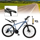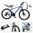 This mountain bike is a fantastic ride! The 27-speed gears make climbing hills smooth, and the double disc brakes provide reliable stopping power. The high-carbon steel frame feels sturdy yet lightweight, and the suspension handles rough trails with ease. Love the sleek blue design—it looks as good as it performs. Assembly was straightforward, and it arrived well-tuned. Perfect for both men and women who want a durable, stylish MTB for adventure!