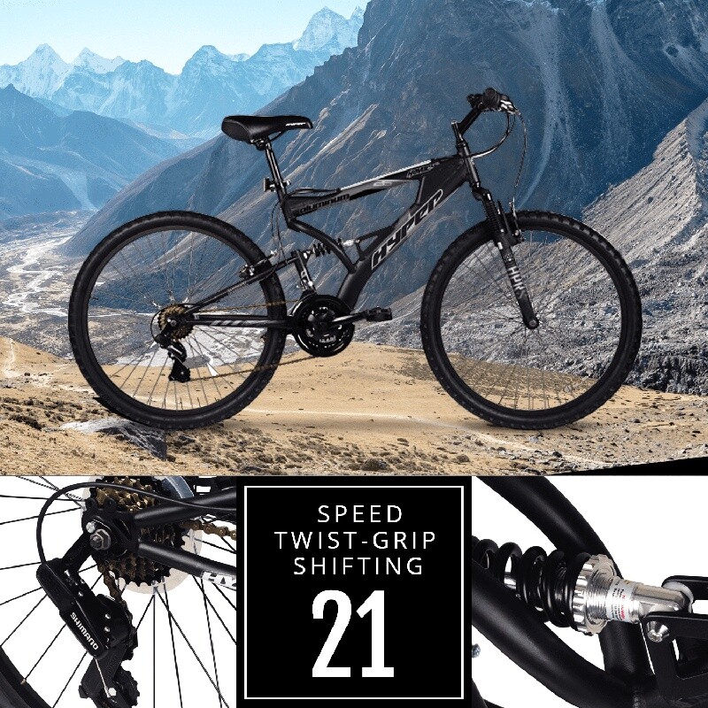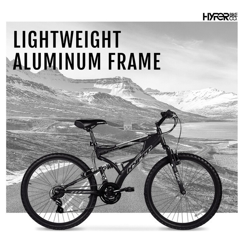 You may also like Large Rolling Duffel Telescopic Handle Drop Bottom Heavy Duty Travel Bag New 74.07 USD 77.97 USD Free shipping 5% off Gluten Free Yellow Cake Mix 12 Pack Premium Baking Mix Easy to Prepare New 63.89 USD 67.25 USD Free shipping 5% off 2-in-1 Sweep & Mop Deluxe Multi-Surface Floor Cleaning Kit Heavy Duty Cloths New 28.41 USD 29.91 USD Free shipping 5% off 2 Pack Portable Folding Bungee Reclining Beach Chair W/ Storage Pockets New 85.79 USD 90.3 USD Free shipping 5% off Gluten Free Chocolate Fudge Brownie Mix 12 Pack Easy Bake Chocolate Chips New 63.89 USD 67.25 USD Free shipping 5% off Non-Stick Round Cake Pan 2 Pack Heavyweight Steel Durable Easy Release Bakeware 22.71 USD 23.91 USD Free shipping 5% off Heavy Duty Aluminum Foil 18 Inch Roll 75 Sq Ft Kitchen Cooking Wrap Pack New 105.11 USD 110.64 USD Free shipping 5% off Gluten Free Double Chocolate Brownie Mix Fudgy 7 Pack Whole Grain Dessert New 39.74 USD 41.83 USD Free shipping 5% off Round Table Pad Protector Waterproof PEVA Flannel Backing Heat Resistant Spills 28.45 USD 29.95 USD Free shipping 5% off 4 Pack Non-Stick Oblong Baking Pan W/ Lid 13x9 Inch Brownies Casseroles New 51.39 USD 54.1 USD Free shipping 5% off Water Resistant Polyester Fabric Indoor Outdoor Home Decor Cushions Upholstery 28.47 USD 29.97 USD Free shipping 5% off 21in Weekender Duffel Bag Travel Zippered Compartment Lightweight Carry On New 44.19 USD 46.52 USD Free shipping 5% off This Hyper Havoc Men's Mountain Bike for adults is the key to outdoor fun. It has a lightweight aluminum frame that lets users ride harder for longer, providing a reliable experience. The 26" Hyper Havoc is designed with a front and rear suspension to offer a smooth ride on any surface. It features 21 speeds, ensuring versatility in the ride. This mountain bike has a comfortable twist shifter and a rear derailleur, allowing riders to change the gears quickly and smoothly. It also features a three-piece, high-performance crank. This bike is made with standard pedals for a comfortable and secure ride. It has grips on the handlebars for sustained comfort and control. Additionally, the bike comes equipped with a plush MTB seat, so the backsides will stay comfortable on long rides. It has a sleek, black design that provides a modern look. The bike can be ridden on a variety of surfaces, allowing for flexibility in where you go with it. Durable steel dual suspension Mountain Bike frame Front suspension fork and rear coil shock 21 speed twist shifters with Shimano® rear derailleur Front and rear linear pull brakes Alloy rims and three-piece cranks Max Adult rider weight: 275 lbs. You may also like Giddy Up Electric Grill Brush Rechargeable Heavy Duty Stainless Steel Bristles 64.41 USD 67.8 USD Free shipping 5% off 9ft Spinning Surf Combo Fishing Rod Reel W/ Bonus Pompano Rig 3pc Setup New 38.44 USD 40.46 USD Free shipping 5% off 3.2 Cu Ft Retro Dry Erase Compact Fridge, (EFR331 192.66 USD Free shipping 4-Bike Hitch Mounted Rack Carrier Road Trips Camping Adjustable Tie-Down System 225.72 USD Free shipping Seat Mount Clamp-on Swivel Fit Depths 7.5-18 In Hole Pattern Installation Boats 49.81 USD 52.43 USD Free shipping 5% off Buttermilk Pancake Mix 6 Pack Long Shelf Life Food Storage Easy Prep 32 Servings 86.75 USD 91.32 USD Free shipping 5% off Pet Urine Stain Remover Carpet Multi Surface Odor Eliminator Cleaner 24oz New 9.66 USD 10.17 USD Free shipping 5% off Step N Rest Rollator Walker with Padded Seat 6" Wheels Backrest Storage Pouch US 80.12 USD 84.34 USD Free shipping 5% off Mini Portable Thermal Food Warmer Office Reusable Travel Portable Convenient New 55.14 USD 58.04 USD Free shipping 5% off 32 Pair Expandable Shoe Rack Organizer Dustproof Storage Cabinet Closet Entryway 59.26 USD Free shipping Folding Beach Chair Set 2 Pack Adjustable Lightweight Portable Outdoor Lounging 90.88 USD Free shipping Travel Duffel Bag W/ Water Bottle Holder Bi-Fold Bottom Board Adjustable Strap 28.12 USD 29.6 USD Free shipping 5% off