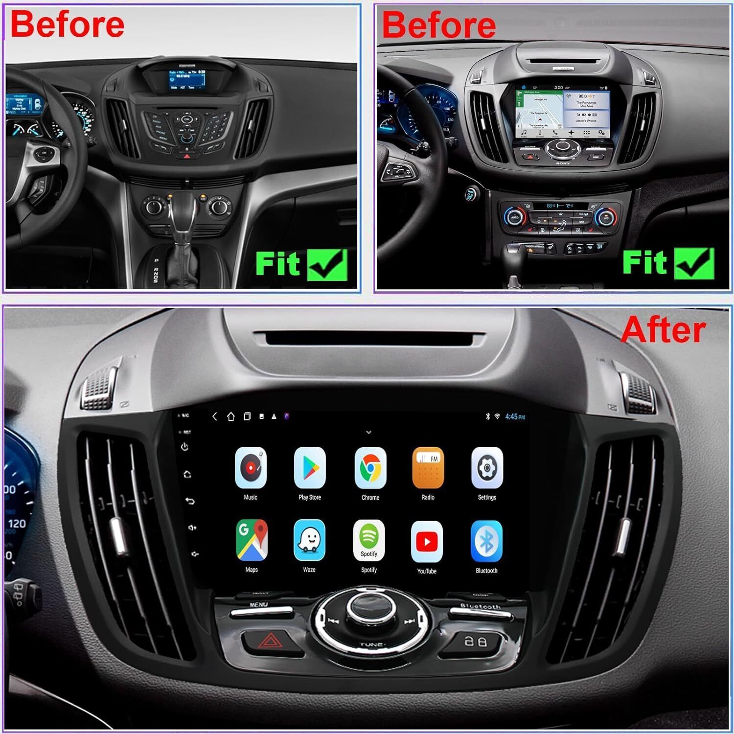 DESCRIPTION PAYMENT SHIPPING RETURN POLICY CONTACT US 2+64G For 2013-2019 Ford Escape 9" Android 15 Carplay Car Stereo Radio GPS WIFI # Features - Compatible for Escape 2013-2019, supporting full CarPlay and Android Auto for effortless smartphone integration. Stream music, navigate, and take calls safely via voice commands or the intuitive interface. - Full steering wheel control (SWC) compatibility to retain factory settings. No extra adapters needed, allowing seamless use of original car buttons to adjust volume, skip tracks, and answer calls. - Innovative split-screen functionality for enhanced productivity. Simultaneously view navigation maps while controlling music, or monitor parking camera feeds while adjusting settings. - DAB+ digital radio support (DAB+ box required, sold separately) for upgraded listening experience. Offers crystal-clear sound, more stations, no static interference, and displays track info, station logos, and real-time updates. - DVR (Dash Cam) support (dash cam sold separately) to enhance driving safety. Records journeys in high definition, supports loop recording (no loss of important footage), and parking mode (monitors the vehicle when parked). - Note: Check your car model, year, and model number for compatibility before ordering. Or send a complete image of the plugs on the back of the center console and on-board main unit (as shown in the picture) to confirm exact matching and whether additional wiring harness or adapters are needed. # Specifications - Product name: Car Player - Screen size: 9 inches - Operating System: Android 15 - Memory: 2GB (RAM) + 64GB (ROM) - For CarPlay and Android Auto: Support - AHD camera: Supports - Microphone: Supports - GPS Navigation: Supports - WiFi: Support - Bluetooth: Support - CPU: Quad Core - Radio Band: FM/ RDS - DSP: Support - DAB+: Support (optional) - Split Screen Function: Support - USB DVR input: Support (camera optional) - Steering Wheel Control: Support - Unit Size: 2 DIN # Fitment - Compatible for Escape 2013-2019 # Package includes: - As Shown In The Figure Tips : Q1. Why won't the car radio turn on?Please check the car radio's voltage: 12V. When testing the car radio, you can connect the red and yellow wires and attach them to the positive terminal of the power supply. The black wire goes to the negative terminal of the power supply. Insert a fuse of the same type to test the car radio.Note: Be sure to use our power cables to connect the car radio. The original vehicle connector cannot be plugged directly into our unit. Q2. Why does the car radio display "No Signal" when reversing?Please check if the camera cable is correctly connected to the car radio.Note: The reverse camera's video port must be plugged into the "CAMIN-Port" of the car radio. Q3. Why does the camera display "!" and "Videos cannot be viewed while driving" when I watch videos via USB?Turn off the "Video Warning Function" in the Settings – then it will work. Q4. Why can't FM be searched?The radio antenna is not plugged in.Please check if the radio antenna is plugged in. Reinsert the antenna several times to ensure a good connection.The location signal is weak. Go to a place with better reception to test again.The vehicle's radio antenna is defective/inoperative; replace the radio antenna and test again. Q5. Why can't the car radio's Bluetooth connect?Open the phone settings screen, enable Bluetooth in the Bluetooth function, search for Bluetooth devices, and select the player's Bluetooth model to pair. If a pairing code is required, enter 0000; if not, try 1234 or 123456. Try testing this function with another mobile phone. If all methods are applied correctly but Bluetooth still doesn't work, unplug the connector on the back of the player and plug it back in after 3 minutes. # Features: - Applicable models: this car stereo radio is compatible for Toyota RAV4 2013-2018. - Wireless & wired car-play: you can choose wired connection or wireless connection to car-play, connect to iOS mobile phone, access mobile phone address book, mail, notification, map navigation, music, video and other information, and realize voice control. - Wireless & wired Android-auto: built-in wireless Android-auto car system can closely integrate the user's Android phone and player, and realize navigation, make calls, send and receive information, listen to music and other operations via data cable connection. - Built-in WIFI: connect to WIFI, you will find a new world, the most convenient is the online map. Built-in bluetooth hands-free and phone book to play music directly over the phone. (You need to agree to the phone authorization and contact information for syncing your phone settings.) - Built-in GPS navigation: you can purchase directly from play store for offline navigation. With wifi connected, Google Maps can be used perfectly, you can go anywhere you want and never get lost again. - Support mirror link function: Yes, support WIFI screen mirroring for IOS and Android smartphone via USB cable. - Split screen function: two pages can be displayed at the same time, such as navigation and music display at the same time. - Steering wheel control: through it you can control the functions you need through steering wheel, more convenient. - Rear view function: support rear view camera input, parking car more convenient. The radio will automatically display the reversing image as soon as you engage reverse gear. - Support AHD camera: when reversing, the AHD camera reversing image will be automatically displayed on the screen. - Support external microphone. - Note: Please check your car model before you shoot your order, calculate the year and model number and check the compatibility, or send us a complete image of the plugs on the back of the center console and on-board main unit(as the picture shown) to make sure it matches exactly and help you confirm if you need any other wiring harness or adapters. # Specification: - Material: plastic, metal - Voltage: DC 12V - O