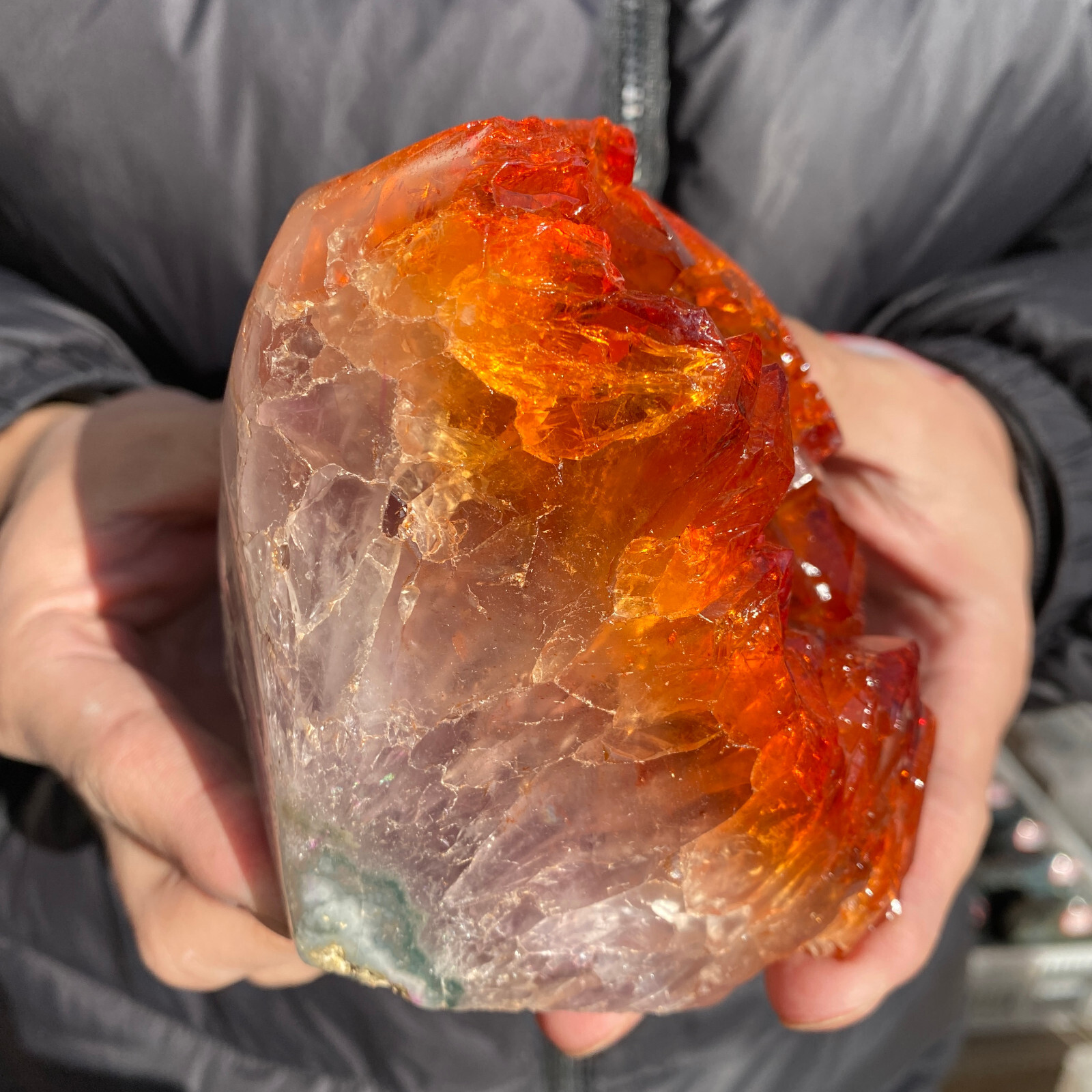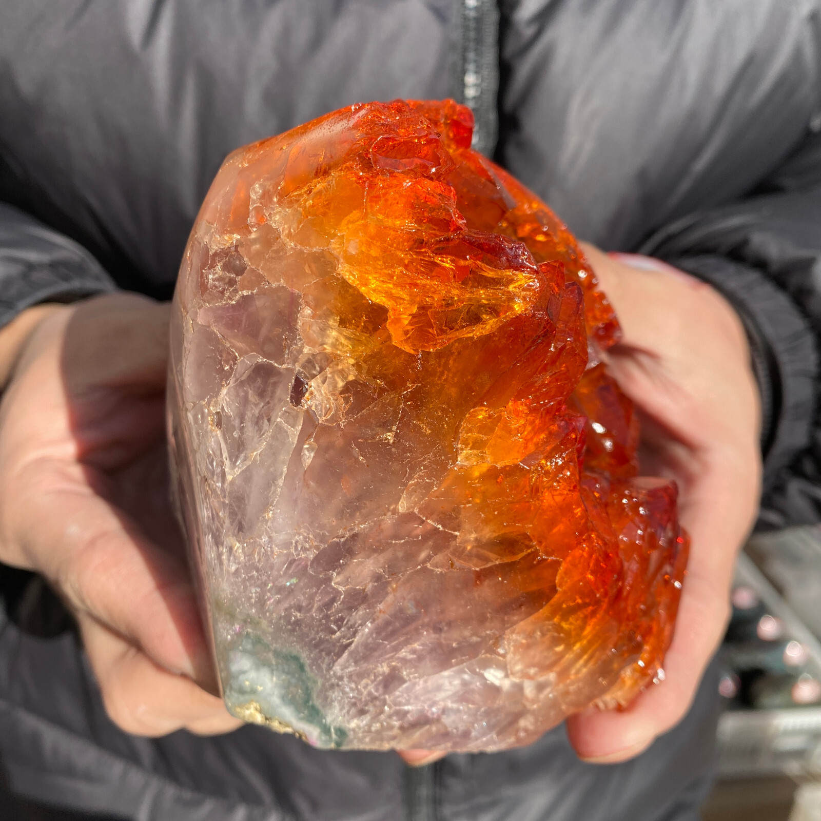 Amazing blue green hues in the fluorite. Item got here super quickly and it was wrapped completely in bubble wrap and tape. It looks exactly like the picture. It’s a solid chonk of a rock with interesting white flecks of crystal on the bottom. A+ transaction!!!