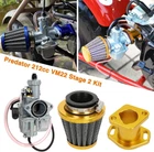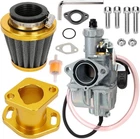26mm Carburetor Predator 212 Performance Carb Intake Mainfold 38mm Air Filter Upgrade Kit for 212cc 196cc Clone Hemi Engine Mini Bike Coleman CT200U BT200X KT196 Go Kart Gold About this item Upgrade your big engine with our 212cc 6.5Hp Predator high-performance Carb Intake kit for go-karts and minibikes. It's a quick and easy job to upgrade your engine's parts. Larger displacement gas powersports engines need larger volumes of clean dust-free air into the carburetor in order to produce the horsepower that you want when on the track or trail. This big filter does a superlative job in keeping the dust and crud out of your carb, resulting in better horsepower and smoother running. Carburetor Kit adapt to Predator 212cc Engine, Hond* GX200 And 196cc Clones Mini Bike Race Go Kart Fit Adapt to modle: for Freight Predator 60363 68121 68120 69727 69730 6.5HP/7HP 212cc Engine (RATO R210-III). / Baja Motorsports Mini Bike MB165 & MB200 (Heat, Mini Baja, Warrior) / Colema* Powersports BK200 / Colema* Powersports BT200X / Colema* Powersports CT200U Trail / Colema* Powersports KT196 / Monste* Moto / Mega Moto Mega Max (MM-B212MX) Mini Bike / Monste* Moto / Mega Moto MM-B212PRO / Predator 212cc 6.5 HP / TrailMaste* Buggy Interceptor / TrailMaste* MB200-1 / TrailMaster MB200-2 Please check for the details and size to make sure this part will fit. Package Include:1 pcs carburetor, 1 pcs fuel filter, 1 pcs wrench, 1 pcs Mainfold, 1 Set Gaskets, 1 set Mounting Screws