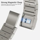 Specification Color TItanium Special Features Full titanium;DLC Coating Compatibility For Apple Watch Ultra 49mm / Series 10 46mm / Series 9 8 7 45mm / Series 6 5 4 SE2 SE 44mm Clasp Titanium Magnetic Clasp Connector Titanium Connector Titanium Grade Titanium Grade 2 Herring 800+HV Band Width 26mm Band Weight 72g(max) Band Thickness 3.4mm Band Length 210mm Clasp Thickness 5.5mm Wrist Size 150mm to 234mm Feature Lightweight;Corrosion-Resistant;Anti-Allergy Included Components Titanium watch band Warn tips: If you have specific requirements on packaging and components such as minor adjustment links、removal tool、tool pins and instruction, please contact online customer service. Product Description Full Titanium Band VS Titanium Band: All components include links, magnetic clasp, and connectors are crafted from titanium material, setting our bands apart from others with clasps and connectors made of non-titanium material 26MM Wider Design: The wider watch band best fits the Ultra. Design for any bold soul. Compatible with Apple Watch Ultra 49mm / Ultra 2 49mm / Series 10 46mm / Series 9 8 7 45mm / Series 6 SE 5 4 44mm. Fit wrist size 6.7" to 9.2"(170 to 234mm). We provide a minor adjustment link to adjust the band to fit for your wrist accurately Lightweight and Corrosion-Resistant: 72g(max). Experience the extraordinary benefits of full titanium - our titanium bands are not only lighter but also more corrosion-resistant than non-full titanium alternatives. Dive into the ocean or pool without worry, as our bands are built to withstand various environments Titanium Connectors: CNC high precision craftsmanship and unique titanium connectors ensure a tight and stable connection with original watch interface. Make sure your watch band stays securely attached, providing a seamless and comfortable fit Titanium Magnetic Buckle & Hook and Loop Closure: Sensitive skin? No problem. Our titanium magnetic buckle is an excellent choice, offering comfort without compromising style. Say goodbye to allergies associated with non-full titanium watch bands. Ensuring your watch band is comfortable to wear all day long. Magnetic buckle & hook and loop closure lock your watch easily and securely DLC (Diamond-Like Carbon): Our aerospace-grade titanium bands are not only a perfect match in material and color for the original watch, but also The DLC coating gives it extra durability and protection, far higher wear resistance than non DLC