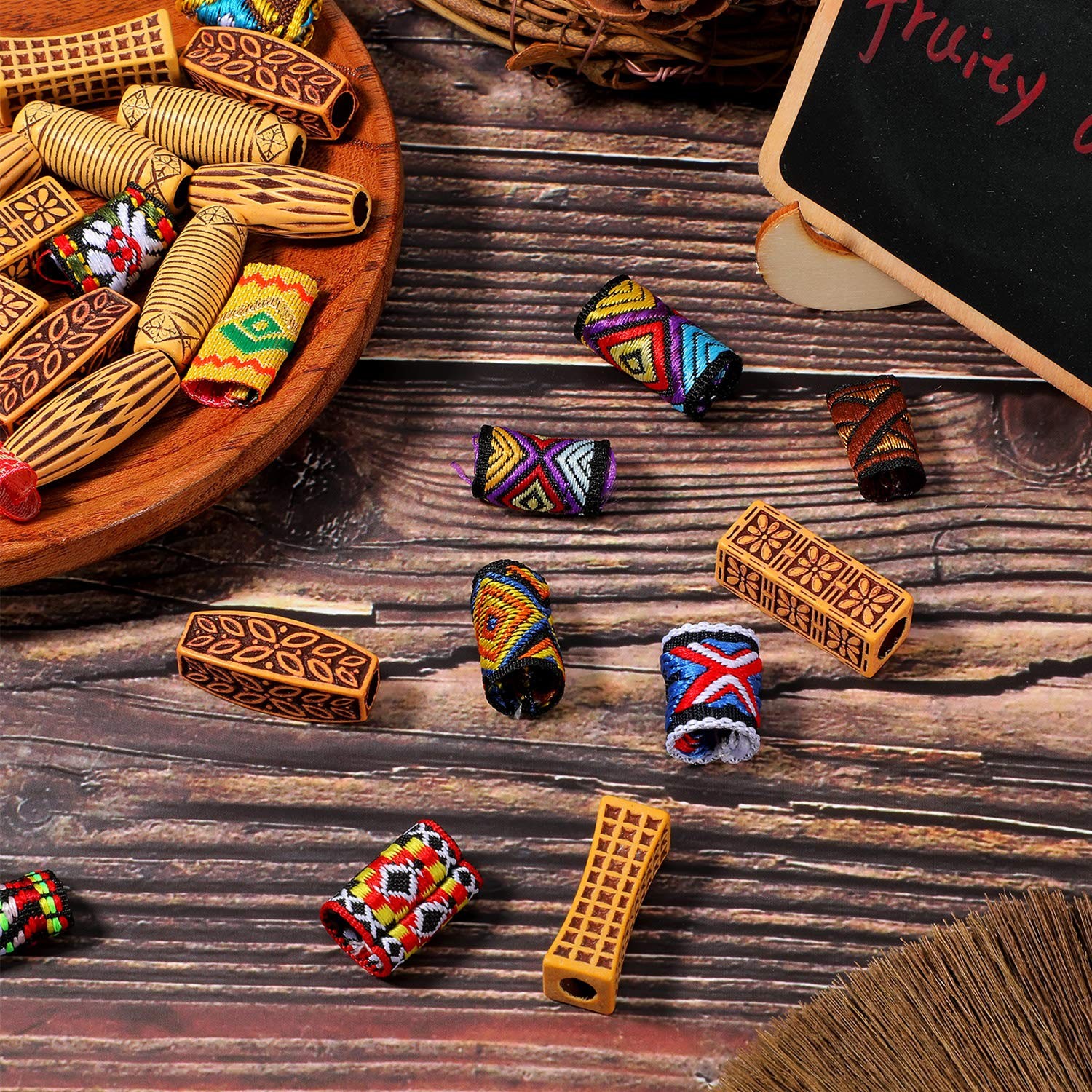 27 Pcs Wooden Fabric Dreadlock Beads Tube Beads for Hair Braids Jewelry for Hair Beard Ornament for Women Men DIY Necklace Bracelet Earring Accessories(Symmetric Pattern) 27 Pcs Wooden Fabric Dreadlock Beads Tube Beads for Hair Braids Jewelry for Hair Beard Ornament for Women Men DIY Necklace Bracelet Earring Accessories(Symmetric Pattern) FREE AND FAST SHIPPING! About this item Durable material: the dreadlock beads come with 2 different materials, 15 pieces of barrel beads are made of quality wood and the other 12 pieces of dreadlock beads are made of polyester fabric, both of them are durable and long lasting, can be applied for multiple times Various patterns and rich colors: our DIY hair braiding jewelry accessories are designed in diverse styles and look cool and different, you can choose and replace according to your needs and match with your daily outfits Multiple applications: the hair braiding beads can not only be applied for hair and beard decoration, but also a good decorative accessory for making your own necklace, bracelets, earrings and so on, make you look eye-catching and attractive in the crowd Enjoy the fun: dreadlocks rings are good tools for hair extension, braiding dreadlocks, you can create different hairstyles with your family members and friends by these dreadlocks beads; It also a good gift for your lover, family, friend and coworkers Sufficient quantity: you will receive totally 12 pieces of fabric dreadlock beads and 15 pieces wooden barrel beads, different styles and materials for you to match with various outfits, easy-matching with most hair types and hair styles Product We offer a 30-Day Return Policy on items which you are not completely satisfied with. You have the option for a full-refund or an exchange of the item. No returns are available on items shipped outside of the US . Shipping We offer Free Shipping to the US and ship within 2 business days of payment, usually sooner. We use UPS express shipping. That's why your products are usually delivered within 3 days . Contact We try our very best to make sure every customer is completely satisfied. If there's a problem , message us! We're happy to help. 24/7 live chat available.