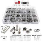 Material 304 (A2-70) stainless steel Set A : total 270pcs + 4pcs screw driver (free) screw 270pcs + driver 4pcs: Set B : total 840pcs + 4pcs screw driver (free) screw 280pcs + nut 280pcs + washer 280pcs + driver 4pcs On Feb 7, 2025 at 21:07:07 PST, seller added the following information: