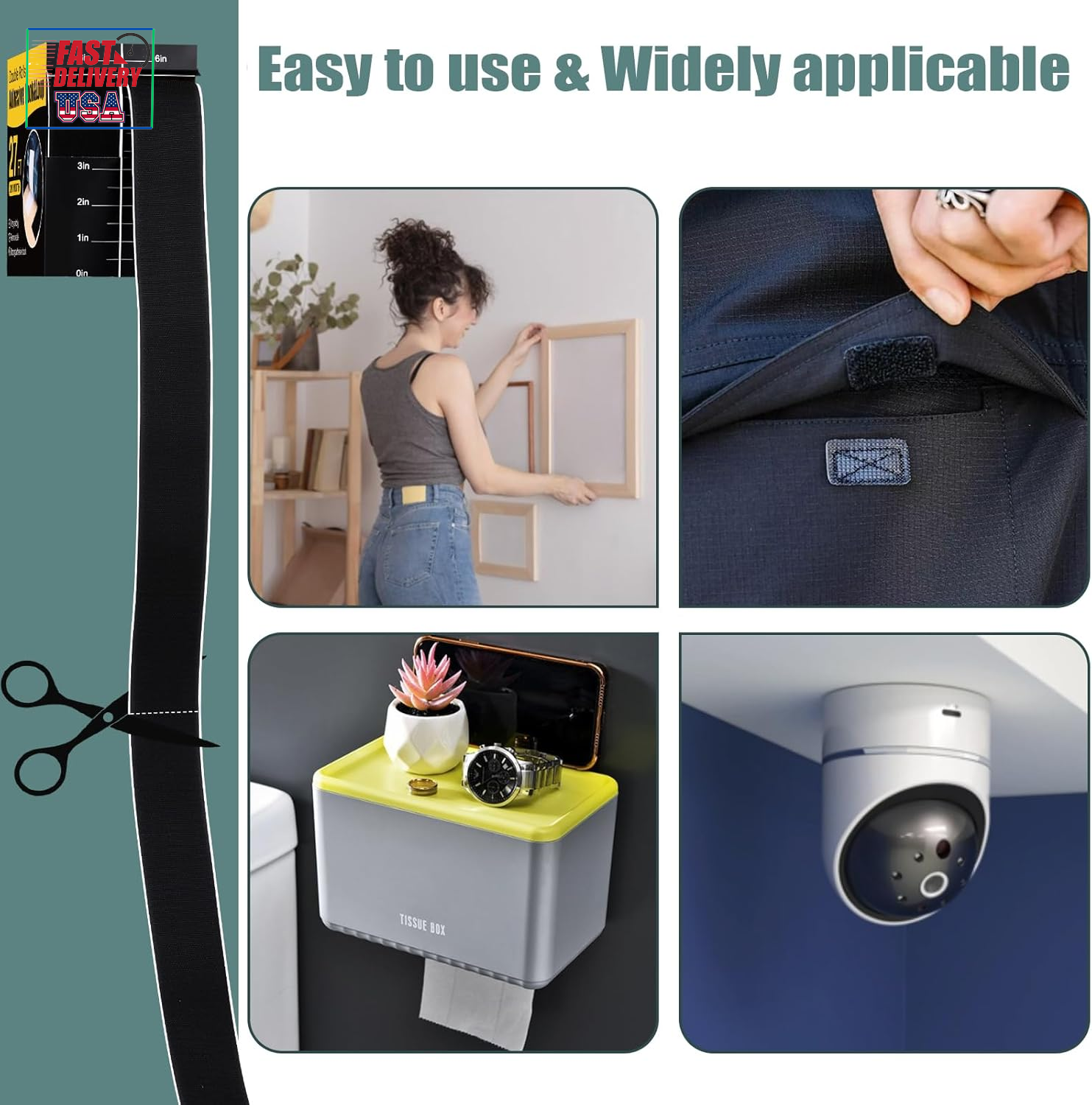 Store New Arrivals Add to Favorite View Feedback Contact 27Ft X 2 Inch Hook and Loop Strips with Adhesive,Double Rolls of Heavy Duty Self Adhesive Tape with Backing, Nylon Self Adhesive Tape for Home Office School and Crafting,Black Description Item model number na0227 Style 2in x 27ft-black Mounting Type Adhesive Color black Material Nylon Country of Origin China Item Weight 0.634 ounces Recommended Uses For Product securing items without making holes in surfaces, home organization, crafting projects, sewing projects Size 2inch Product Dimensions 6 x 6 x 2.3 inches ใ๐๐ก๐๐ญ ๐๐จ๐ฎ ๐๐ข๐ฅ๐ฅ ๐๐๐ญใ Width: 2 inches. Rolls: 1 roll of 27 feet self-adhesive hook tape and 1 roll of 27 feet self-adhesive loop tape. For your convenience, we will also include a pair of scissors. ใ๐๐ฎ๐ฉ๐๐ซ ๐๐๐ก๐๐ฌ๐ข๐จ๐ง ๐๐จ๐จ๐ค ๐๐จ๐จ๐ฉ ๐๐๐ฉ๐ใ Made with 100% nylon material, this 2inch tape boasts strong adhesiveness and can be reused. ใ๐๐ญ๐ซ๐จ๐ง๐ ๐๐๐ก๐๐ฌ๐ข๐ฏ๐ ๐๐๐๐คใ It features a firm grip and a highly sticky self-adhesive back, providing a secure and lasting attachment. No residue is left when removed from smooth surfaces. ใ๐๐ข๐๐ ๐๐ฉ๐ฉ๐ฅ๐ข๐๐๐ญ๐ข๐จ๐ง๐ฌใ This 2inch self-adhesive tape can be applied to any smooth surfaces, such as walls, plastics, glass, and more. Suitable for home, office, school, as well as crafting and sewing projects. ใ๐๐๐ฌ๐ฒ ๐ญ๐จ ๐๐ฌ๐ใThe hook and loop tape is designed for easy peel-and-stick application, and it can be easily trimmed to size. It's a simple solution for securing items without the need for making holes in surfaces. Product Description Durable Nylon with Strong Grip Made of durable and premium nylon material, the hook and loop side will have a strong grip to hold things together. Very Sticky Made with 100% nylon material, this tape boasts strong adhesiveness and can be reused. Strong Adhesive back With industrial strength sticky backing, it will stick to the smooth surfaces firmly, ideal for both indoor and outdoor use. Tips for more Stable Use we suggest to leave the adhesive strips in place for at least 24hours, so that it will be more stable. ABOUT US We offer the best prices around on high quality products. Our E-store includes media such as books, movies, music and games while offering electronics, toys, sporting apparel, clothing, tools, general home, garden items and more. SHIPPING We are always working hard to ensure your package arrives as soon as possible. Please understand that some factors like weather, high postal traffic, and the performance of shipping companies are outside of our control. We offer free shipping to the lower 48 states and ship within 2 business days of payment, usually sooner. We do not accept P.O. Boxes. Please provide a physical address. For shipping outside of the continental USA, we only use eBay's Global Shipping Program.The item is shipped to KY and then sent to the rest of the world. International customers are responsible for all duties and taxes. Continue to check out in order to calculate costs for shipping the item to your country. Messages regarding eBay's Global Shipping Program MUST be directed at eBay EXCLUSIVELY. RETURNS We offer a 30-Day Return Policy on items which you are not completely satisfied with. You have the option for a full-refund or an exchange of the item. No returns are available on items shipped outside of the USA. PAYMENT We accept PayPal. CONTACT US This page content is yet to come Please ad us to your favorite seller and visit again later Thank You CUSTOMER SATISFACTION We try our very best to make sure every customer is completely satisfied. If there's a problem, message us! We're happy to help. WE ACCEPT Copyright ยฉ 2021 AutoDS. | All Rights Reserved