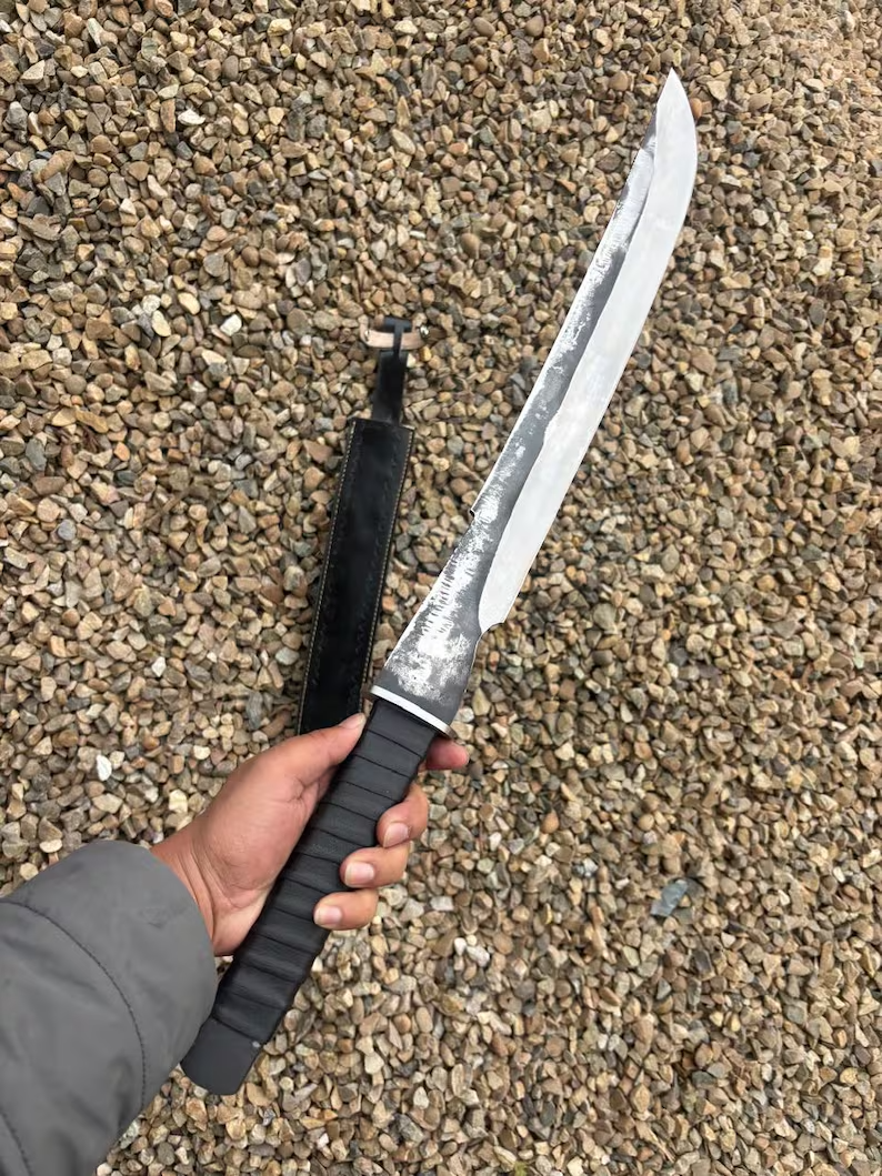 28" Beautiful Custom Handmade High Carbon Steel Katana Sword With Sheath This handmade high carbon steel katana. Designed for collectors, martial artists, and enthusiasts, this stunning sword blends beauty, strength, and functionality into a true masterpiece. Features: ✅ Premium High Carbon Steel Blade – Expertly forged for superior sharpness, durability, and edge retention. ✅ Full Tang Construction – Ensures excellent balance, strength, and longevity. ✅ Handcrafted Excellence – Each katana is meticulously handmade, making every piece unique. ✅ Traditional-Style Handle – Wrapped for a secure and comfortable grip, providing precision and control. ✅ Custom-Fitted Sheath – Includes a beautifully crafted sheath for safe storage and easy transport. ✅ Perfect for Collectors & Enthusiasts – Ideal for display, Iaido practice, cosplay, or as a unique gift. Measurements: Blade Size:19" inches , Handle Size: 9" inches , Overall Length: 28" (Approximate)