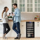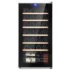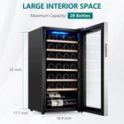 【28 Wine Bottles】The beverage refrigerator can protect your wine bottles from damage with our smooth and high-quality wood shelves. Maximize your storage space with adjustable wine shelves that can hold up to 28 standard 750ml 2.75" wine bottles in the lower zone, and accommodate larger or irregularly shaped wines by removing shelves. 【Smart Temperature Control】This wine fridge has a temperature range of 35-65°F, which can adjust the appropriate temperature according to your needs. The digital temperature display makes it easier for you to monitor and adjust real-time temperatures to keep your wine in good condition. Long Press the mode button can also switch the temperature unit from Fahrenheit to Celsius. 【Low Noise & Energy Saving】Enjoy a quiet, energy-efficient wine cooling experience with our advanced cooling system. This under-counter wine refrigerator runs quietly with low operating noise of 42 dB and can reach the set temperature faster than other wine chillers. Low vibration ensures that your wine sediments won't be disturbed, keeping the taste and maturation of your wine intact. 【Double Pane Glass】The high-quality transparent glass and sealing strips of the wine cabinet greatly enhance the heat insulation and dust-proof effects, reduce the impact of the external environment, and make the internal temperature and humidity levels more stable. 【Built-in or Freestanding Installation】This wine cooler can be installed under the counter in the kitchen or bar area or can be used as a freestanding wine refrigerator. Can be used on any occasion as you wish. It's perfect for storing all your drinks at a party, bar, or at home.