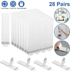 Product Feature ✨ What You Will Receive : 28 Pairs of Large White Picture Hanging Strips (56 Total) . ✨ Size : Each strip measures 3.62*0.75 inches, enough for use. ✨ Sturdy and Durable : With a double-sided Velcro strap , it is not easy to shake or fall off, convenient and practical. ✨ Easy to Use : No tools required, no nails required, no hammer required, easy to use for frames or decorations. ✨ Versatile : Can be used on most smooth surfaces such as glass, tile, metal, finished wood (painted or painted ship boards, cabinets or doors), painted concrete cinder block, laminate and more. Not recommended for use on painted walls. ✨ Cleans Up Clean : No holes, marks or sticky residue, so you're free to change your mind or refresh your space. Product Specification Type Seamless Picture Hanging Strip Quantity 28 Pairs (1 Hook Surface + 1 Rough Surface Is A Pair) Color White Material Nylon + Polyester Size 9.2x1.9cm (3.62x0.75in) Package Included 🎁 28 Pairs Picture Hanging Strips