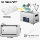 28/40KHZ 30L Ultrasonic Cleaner Jewelry Cleaning Machine w/ Digital Timer Heater Dual Frequency Ultrasonic Jewelry Cleaner Machine 30L lab Professional Ultra Sonic Glasses Cleaning hypersonic Heated for Diamonds, Eyeglass, Ring, Food, Gun Parts, Watches, Denture Description Traditional hand washing or washing machine cleaning is difficult to penetrate the gap to achieve all-around cleaning. This ultrasonic cleaner is your ideal choice. It is mainly composed of the ultrasonic generator, line controller, transducer, and cleaning tank, and is an expert in cleaning, maintenance, oxidation, extraction, cavitation, and other aspects, which enables it to meet the different needs of users. This machine is very suitable for home or professional use. The large tank (7.9 gal) can wash lots of items at a time to improve efficiency. Net Weight: 13.5kg/29.7lbs Gross Weight : 14.4kg/31lbs Package Size : 63*43*40cm/24*16*15inch Product Size : 33*58*33cm/13*22.8*13inch The smooth surface and detachable design allow for easy cleaning. Meanwhile, the shell is embossed with stainless steel embossing process, so the dust and fingerprints can be removed immediately The 201 stainless steel housing and 304 stainless steel tank with an electrolytic process can resist wear, corrosion, rust, heat, shock, and deformation. And the thickened tank (0.04inch) is integrally stamped without welding to avoid water leakage. Meanwhile, the power cord adopts thickened copper wires with good conductivity to save electricity Adjustable Temperature&Work Time: You can freely adjust the liquid heating temperature (0-176℉) and the working time within 30 minutes. Ultrasonic cleaning and heating can be carried out at the same time to turn your items into a new state. Meanwhile, the LED display screen can display them, allowing you to grasp the usage status of the product. After stopping work, it will automatically display "0000" for the time. Three Cleaning Modes: It includes sweep(28khz), turbo(40khz) , and degas modes . The dual working frequency can be used to clean different items for energy-saving. The 40KHz can be used to clean objects with complex shapes&surfaces and blind holes, and 28KHz is used for small or simple projects. The degassing cleaning mode can penetrate more tiny cracks with greater force and better effect. It can help remove the oxide on the metal surface so that it is not easy to oxidize and can be stored for a long time. The built-in cooling fan and dense heat dissipation holes on both sides can dissipate heat in time and prolong the service life of the product. When the temperature is higher than the preset value, the machine will automatically stop heating. Besides, it will automatically remember the last working time and temperature to avoid frequent settings . The round hole allows for easy water drainage and the drain joint is equipped with a valve to control the water outlet speed. It uses an industrial strong shock head with high power, wide cavitation range, and high-frequency vibrations, as well as 8 transducers to generate millions of tiny bubbles to clean items thoroughly and consistently even for cleaning small objects with small holes, grooves, etc. Other Details: Switch: the waterproof switch allows you to easily start the machine while ensuring great safety Top Lid: It can well seal the machine to reduce heat loss and noise. Meanwhile, the handle on the top allows you to easily pick up the lid. Recessed Handles: The recessed handles on both sides make it convenient to move the machine. Support Feet: The four rubber support feet at the bottom are abrasion-resistant, non-slip, and can ensure the stable placement of the product. Lowest Water Line: The lowest water line inside the tank can help you add enough water. Application It is suitable for cleaning jewelry, watches, glasses, tableware, dental equipment, milk bottles, circuit boards, hardware parts, razors, laboratory equipment, etc. It can be used to clean the long holes, cracks, and shields of the workpiece and is mainly used in the laboratory, food industry, biology industry, agriculture industry, or daily necessities industry. Specification Model: TH-SPQXJ-100A Color: Silver Material: 201&304 Stainless Steel, Rubber Shape: Rectangular Style: Modern Tank Thickness: 1.1mm/0.04inch Surface Treatment: Electrolytic Process, Integrated Stamping, Stainless Steel Embossing Process Voltage: AC100-120V, 60Hz Ultrasonic Frequency: 28/40KHz Ultrasonic Power: 600W Heating Power: 800W Power Type: Plug-in Plug: American Standard Number of Transducers: 8 Tank Capacity: 30L/7.9gal Heating Temperature: 0-80℃/0-176℉ Working Time: 0-30min Noise: About 100dB Screen: LED Display Screen, Touch Screen Mounting Type: Desktop Placement, Freestanding Package Included 1* Ultrasonic Cleaner 1* Cleaning Basket 1* Ball-shaped Basket 1* Lid 1* Hose 1* Power Cord 1* English Manual Notes Since the machine's bottom is curved, the actual capacity may be smaller than 7.9 gal. It is recommended to use a cleaning temperature of 104-140 ℉ to improve cleaning performance. Please note that the machine can only work under 110V voltage with good grounding. Please read the manual completely before installation and use, and pay particular attention to the safety instructions included. Please allow the slight color difference caused by the shooting light and 1-3cm error due to manual measurement, and make sure you do not mind before ordering. Statement (FDA, ARTG) The sale of this item may be subject to regulation by the U.S. Food and Drug Administration and state and local regulatory agencies. If the item is subject to FDA regulation, I will verify your status as an authorized purchaser of this item before shipping of the item. If you have questions about legal obligations regarding sales of medical devices, you should consult with the FDA's Center for Devices and Radiological Health: https://www.fda.gov/cdrh/devadvice/ https://www.fda.gov/cdrh/industry/support/index.html Th