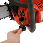71CC 28" Gasoline Chainsaw Cordless Power Chain Saw Wood Cutting 2-Stroke Engine Handheld Cordless Petrol Chain Saw, Gas Powered Chainsaw, 71cc Gasoline Chainsaw Power Head Description Selected materials, excellent performance and powerful engine make this gas chainsaw an efficient professional cutting tool, which saves you time and labor. With silent and vibration-dampening design, an ergonomic handle, a braking baffle, and a pull-start ignition method, it is safe and comfortable to use. Key Features Made to Last: It is made of high-quality nylon housing, aluminum handle, and Mn steel guide bar&chain , which is insulating, strong, durable, wear-resistant , and not easy to deform. Excellent Performance : The 2-stoke engine with 71cc displacement, 10000rpm high speed, and 3.9KW high power, the high-magnetic flywheel with thickened blade design, the filter, the pressure-reducing valve, and the 28" guide chain can achieve fast cutting, thus providing excellent performance(about 28" cutting diameter). Cost Saving: The combination of this quality carburetor and automatic lubricating oil system enables the product to provide a stable and economical supply of chains and bars, quickly and easily adjust chain tension, and reduce friction and oil consumption by 20%, thereby improving cutting performance and extending service life. High Safety: The double protection switches that must be pressed at the same time to work can prevent the machine from accidentally starting. The heat-sink holes on the machine also ensure good heat dissipation. Moreover, the guide plate has an inertia-activated chain brake to reduce the possibility of injury due to recoil, and the practical gloves and the widened brake baffle that makes emergency braking can protect your hands from hurting, avoid sawdust splashing, and improve safety. Convenient and Comfortable: With a hand-pull spring-loaded starter handle, premium spark plug, safety switch, and throttle switch, it's convenient to use. Its Cordless design and non-slip shock-absorbing ergonomic handle allow you to operate more easily and freely. Moreover, the silencing and damping designs can effectively reduce noise and vibration, providing you with a multi-angle cutting by changing the direction of the machine, which is convenient for you to use. Easy to Install: The simple structure, complete accessories, and English manual allow you to install this product in minutes, saving you time and labor. Protective Package: To prevent the product from being damaged and bumped during transportation, we packed it with foam to protect your products to the maximum extent possible. Customer Service: We aim to provide quality products and services. If you have problems, please feel free to contact us. We will reply and solve the problem for you as soon as possible. Details Tool Bag: It can help you organize your accessories in an orderly manner, making it easy for you to carry around and effectively preventing accessory loss . Fuel Tanks: The 18.6Oz translucent fuel tank and 4.73Oz chain fuel tank allow for large capacity, a convenient mixture of fuels, and long-term use without frequent filling. Double Nuts and Piston Rings: The guide plate is fixed with double bolts to ensure the stability of the product and make the chain not easy to loosen. The rings make the product sealing performance better, which can increase the machine's power. Guide Bar Cover: It allows for convenient storage and better protection of the guide bar when not in use. Application It is suitable for garden pruning, forest logging, chopping wood, bamboo harvesting, timber making, ice cutting, tree pruning, clearing land, preparing firewood or cleaning up, outdoor wood cutting, for home, garden, ranch, and farm use. How to Assemble the Chainsaw Install the jam teeth in the right direction. Install the guide bar. Install the chain. Cover the side cover. Adjust the chain tightness. Tighten the screw. How to Start the Chainsaw 1. Push the brake. 2. Move the On/Off switch to the On position. 3. Pull the choke knob fully out to position. 4. Pull the start handle(Max 6 times). 5. Push the choke knob back fully. 6. Pull the starter until the engine start. Specification Color: Orange Style: Modern Assembly Required: Yes Material: Nylon, Mn Steel, Aluminum Engine Type: Single Cylinder, Air-cooled, 2-Stroke Ignition System: Self-reset Pull Start Fuel Tank Capacity: 550ml/18.6Oz Chain Fuel Tank Capacity: 140ml/4.73Oz Bore : 45.2mm/1.78inch Volume: 116dB Power: 3.9kw Speed: 10000rpm Displacement: 71cc Oil Mixture: 25:1( 90# Gasoline : Oil) Max. Cutting Diameter: 71cm/28in Chain Length: 71cm/28inch Guide Plate Package Size: 85*15*3cm/33.46*5.9*1.18inch Guide Plate Gross Weight: 2.2kg/4.85lbs Host Gross Weight: 7.5kg/16.53lbs Host Package Size: 70*29*35cm/27.56*11.42*13.78inch Package Included 1* Gas Chainsaw 1* Chain 1* Guide Plate 1* Tool Bag 1 Pair*Glooves 1 Pair*Goggles 1* English Manual Other Accessories for Assembly Notes Before starting the gasoline chainsaw, please ensure that it fits well with the guide bar, and use a wrench to adjust the chain. When installing the guide bar, please note that the screw column on the side cover must be aligned with the guide bar hole before installation(The function of the screw column is to adjust the chain tightness.). Please use gasoline 90# with special 2-cycle engine oil and never use pure gasoline . Gasoline and oil mixture ratio: 25:1. The oil output can be controlled to turn larger to the left and smaller to the right. Please note that after the first ignition sound, closing the choke and repeatedly pulling the start handle will suck in too much fuel and prevent the engine from starting. If the choke knob is not fully pushed back after pulling the starter handle up to 6 times, the engine preheating may be missed. Too much fuel will flow out and submerge the spark plug. Then you can't start the chainsaw. The damper is used to regulate air intake. When the engine is cold or not