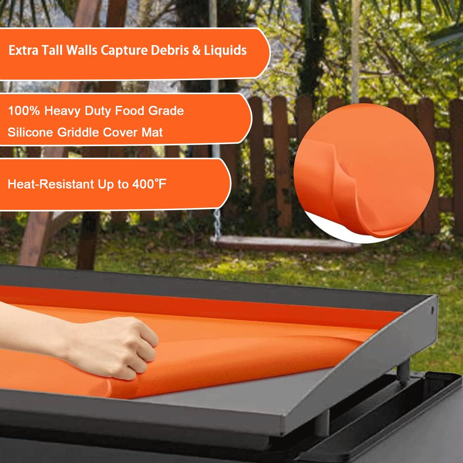 Grill Mat L: 28.82", W: 17.91", H:0.96". Our grill mats are designed to fit your 28" Blackstone griddle, it fits perfectly without any trimming to ensure it won't wobble or slip, we also supply 3 pieces of high quality sponge cloths to help you clean your grill or grill mats before and after use without damaging any of your equipment. Our Heavy Duty Blackstone Grill Mat is made of 100% grade silicone, heavy duty thickened design, soft and flexible, the silicone is thick, easy to clean, foldable for storage, reusable, heat resistant also ensures safety and , it is the safest material to protect the surface of the Blackstone Grill. The Silicone Grill Mat is a perfect fit for the Blackstone Grill. It provides protection against rodents, insects, dirt and rust. The high-sided design of the grill also helps to trap moisture and debris, protecting it from moisture and oxygen. This prolongs the life of the pan and keeps it in pristine condition. Keep your griddle looking new with our silicone grill mat and protect your investment all year round. Enjoy healthy and delicious grilled with friends and family! If you are not satisfied with the tin floor mats or have any quality problems, you can find us through and we will provide you with a satisfactory solution. SILICONE GRIDDLE MAT FOR BLACKSTONE 36" 28" 22" 17” MODEL GRIDDLE GRIDDLE BUDDY MAT BLACKSTONE The Gearmatte Silicone Griddle Mat is an excellent grill accessory that adds convenience and effectiveness to your outdoor griddle cooking. BLACKSTONE GRIDDLE MAT SILICONE This practical tool substantially cuts down on the time needed for both cleaning up and preparing your griddle, as it ensures the griddle surface remains clean and from rust when not in use. BLACKSTONE SILICONE GRIDDLE COVER Gearmatte Griddle Buddy Mat has evolved from its original built-in design to now provide full coverage, effectively extending the lifespan of your BBQ and shielding it from adverse weather conditions. This, in turn, reduces the need for you to incur costs for griddle replacements. Product Feature: Universal Size Easy to Clean 100% Silicone Non-stick,Heavy Duty and Reusable Design Full Protection to Griddle All the Year. PRODUCT Details: 100% Silicone Fit for Griddle 28in Packing List: Grill Mat Silicone x 1pcs Tips: Our Griddle Silicone MAT SIZE: 28.82x17.91x1in(L*W*H). Great for 28" Blackstone griddles and similar model