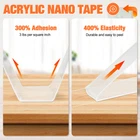 STRONG ADHESIVE Our nano glue allows easy and damage-free attachment of items to the wall.Made of leading acrylic gel material, this clear adhesive double-sided tape demonstrates strong durability and adhesion, three times that of conventional tape. And it is very easy to remove and leave no residue. MULTI FUNCTIONAL DOUBLE-SIDED TAPE The double-sided transparent tape can be used for car phone holders, posters, picture frames, pen holders, wall stickers, hooks, small tools, sticky pads, phone cases, patches, decorative items, and wall decor. Additionally, this tape is washable and reusable. SAFE NANO GEL MATERIAL: This double sided mounting tape is non-toxic, environmentally friendly and recyclable. transparent, no residue, removable. STRONG STICKY: Unlike ordinary tapes, this washable adhesive tape is used the most advanced nano-technology, made of the latest acrylic gel material, ensuring high viscosity, durability, elasticity, and residue-free performance. It adheres perfectly to smooth, clean, non-porous surfaces like glass, windows, doors, wardrobes, table tops, bathroom tiles, and marble. Not suitable for powder wall, plaster wall, rough wall, or paint wall to prevent wall damage. WASHABLE & REUSABLE: The reusable transparent two sided tape can be easily cleaned with water when dirty, but avoid using other wipes or detergents. Simply wash and dry the tape to restore its stickiness for repeated use, with the caveat that the number of uses may vary depending on viscosity. EASY TO USE: Easily cut to any size and length you want! It can be stretched, bending and folded out of shape to meet your needs. The transparent double-sided tape is very easy to remove and leave no residue. MULTI-FUNCTION AND NO MORE MESSY: Say goodbye to disorderly small items with this removable mounting tape. It is versatile and can be used in various settings such as home, office, wardrobe, and bathroom. Use it to easily fix frames, photos, festival decorations, posters, carpets, power sockets, wall stickers, hooks, small tools, pads, phone cases, patches, , wall decor and more, lightweight items.