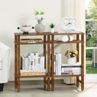 is Committed to individuality and fashion,designs and produces a variety of furniture for families around the world, helping you DIY your home within a reasonable budget. We are passionate about creating exquisite, practical and safe furniture products and hope that this kind of home products can be shared with you! Package Includes: 1 x 1 x Side Table (Includes tools and screws) 1 x Instructions Specifications: Material: Wood Size: 11.81 "D x 15.75 "W x 27.56 "H Weight: 10.03 Pounds Providing Better Furniture We offer simple, functional furniture for modern living. With a reasonable budget, you can get personalized products to decorate your cozy home. Notes: Children are not allowed to climb on the product for safety reasons. Strong and Safe: This tall side table uses solid wood pillars, which are 1.5 times wider than the pillars of ordinary side tables, providing solid support for your items. The round edge design creates a fashionable and modern appearance, while avoiding the damage caused by sharp corners, ensuring the safety and service life of daily use Higher Space: The height of this side table is 27.56 inches, which is higher than the traditional side table design. The second and third tiers have an inner diameter of 15.74 inches, it can hold taller decorations as well as plants that won't be hindered by being too short Multifunctional Use: This tall end table is stylish, simple and versatile. It can be used as a telephone table, tall nightstand, small office table or small entryway table. It is ideal for living room, bedroom, office or entryway Space-saving 3 Tier Storage: This 3 tier small side table, measures 11.81"D x 15.75"W x 27.56"H, is perfect for use as a side table or nightstand in a narrow space. The side table is not very spacious but still has enough room to add a lamp, picture frames, coffee and magazines to the top panel, where you can enjoy a short relaxation with a cup of coffee or tea, while the middle and lower tiers can help you organize more essentials Easy to Assemble & Clean: With clear instructions and labeled parts, assembly takes just 15 minutes. The open, three-tiered design is very easy to clean, simply wipe with a damp rag