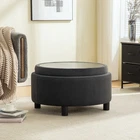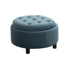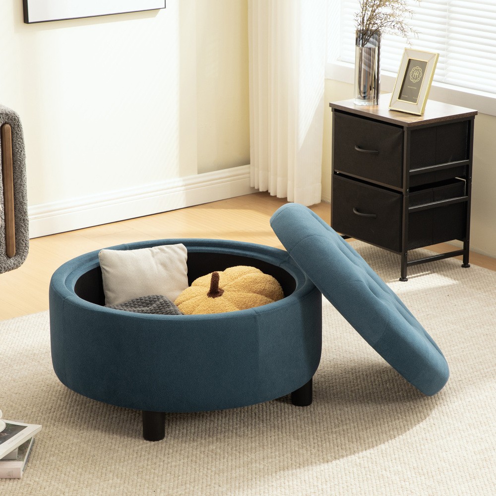 29.33"W Upholstered Round Ottoman with Reversible Lid - Fleece Fabric Storage Stool, Hand-Pulled Buckle Footstool for Living Room, Bedroom, Office, Blue Add a touch of elegance and vibrant charm to your home with this 29.33-inch round upholstered ottoman—where comfort, storage, and versatility meet seamlessly. Upholstered in soft blue fleece fabric with a chic hand-pulled buckle decoration, this ottoman features a reversible lid, spacious storage compartment, and sturdy construction, making it a perfect addition to your living room, bedroom, office, or any space in need of extra seating, storage, or a pop of color. Pure Design & Ultra-Comfortable Seating. This storage ottoman boasts an elegant, streamlined design, with a soft blue fleece fabric surface that feels luxurious to the touch. Filled with high-resilience foam, it offers a plush, supportive seating experience—perfect for resting your feet, sitting casually, or even using as a small seating spot for guests. The hand-pulled buckle decoration adds a subtle, chic detail that elevates its aesthetic, while the versatile blue hue effortlessly complements a wide range of home decor styles, from modern to cozy. Sturdy, Long-Lasting Construction. The ottoman’s frame is crafted from solid and engineered wood (pine and poplar), ensuring durability and stability that stands up to daily use. Supported by black plastic legs, it offers a reliable base with a weight capacity of 300 lbs, making it strong enough for regular seating or storage use. This robust construction ensures the ottoman will be a functional, long-lasting part of your home. Spacious Storage Compartment. Featuring a roomy storage compartment with dimensions of 24.4” (width) × 24.4” (length) × 4.9” (height), this ottoman is ideal for keeping your space tidy and organized. Use it to store blankets, clothes, pillows, bed sheets, books, or other small essentials—hiding clutter while keeping your items easily accessible. The reversible lid adds versatility, allowing you to switch up the look and functionality as needed, whether you’re using it as a footstool, coffee table, or storage box. Versatile Function for Every Space. This ottoman is more than just a footstool—it transforms fluidly into a coffee table, storage box, end-of-bed bench, or shoe bench, making it an essential addition to any room. Its sleek finish and vibrant blue color add a fresh, inviting touch to your living room, bedroom, corridor, office, or any other space in your home. It’s a compact, multi-purpose piece that maximizes functionality without sacrificing style. Quick & Easy Assembly. Assembly is a breeze with partial assembly required—one adult can complete setup in just 5 minutes! All accessories, tools, and detailed installation instructions are included, so you can have your new ottoman ready to use in no time, with no extra tools needed. No complicated DIY skills are required, making it accessible for anyone. The ottoman ships in one secure package with dimensions of 29.92”L × 29.92”W × 15.16”H and a package weight of 40.57 lbs, ensuring safe, damage-free delivery to your doorstep. It features tufted cushions (non-removable) and requires simple care to maintain its soft, vibrant appearance. Product Details - Color: Blue (note: actual product color may vary slightly due to different screen color settings; all website colors are for reference only) - Upholstery Material: Fleece Fabric (Polyester) - Frame Material: Solid Wood (Pine, Poplar) + Plywood (Engineered Wood) - Seat Fill Material: High-Resilience Foam - Leg Material: Plastic; Leg Color: Black - Product Type: Storage Footstool, Upholstered Ottoman, Coffee Table, End-of-Bed Bench - Features: Reversible Lid, Hand-Pulled Buckle Decoration, Tufted Cushions, Spacious Storage Compartment, Sturdy Wood Frame, Versatile Function, Easy Assembly - Storage Compartment Dimensions: 24.4”W × 24.4”L × 4.9”H - Overall Width: 29.33” - Package Dimensions: 29.92”L × 29.92”W × 15.16”H - Package Weight: 40.57 LBS - Weight Capacity: 300 LBS - Suitable For: Living Room, Bedroom, Office, Corridor; Ideal for Use as Footstool, Coffee Table, Storage Box, End-of-Bed Bench, Shoe Bench - Assembly: Partial Assembly (1 adult, 5 minutes; all tools and accessories included) - Product Care: Weekly vacuuming or light brushing to remove soil and prevent dirt buildup; keep away from direct sunlight, heating, and air conditioning outlets to avoid fabric fading or damage. Warranty & Return Policy This blue fleece round storage ottoman is backed by a 1-year warranty against manufacturing defects, ensuring reliable durability and long-lasting use. We also offer a 30-day free return & exchange guarantee for your complete peace of mind. If you’re not fully satisfied with your purchase—whether it’s the style, comfort, storage capacity, or assembly—simply return it within 30 days for a full refund or replacement, no questions asked. Important Notes - Color Variation: Actual product color may differ slightly from website images due to varying screen color settings; all colors are for reference only. - Size Accuracy: Most dimensions are hand-measured, so minor deviations may occur; all measurements are for reference only. - Care Instructions: Avoid direct exposure to sunlight, heating, or air conditioning outlets, as this can fade or damage the fleece fabric. Weekly vacuuming or light brushing helps maintain the fabric’s appearance and prevent dirt buildup. - Assembly: Follow the included detailed instructions for quick assembly (5 minutes, 1 adult). All tools are included—no extra tools needed. - Weight Capacity: Do not exceed the 300 lbs weight capacity to avoid damage to the ottoman’s frame or fabric.