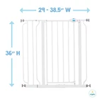 The all-steel construction of the baby gate provides parents with peace of mind that it will hold up to the everyday use of your curious toddler. The adjustable nature of the gate provides convenience accommodating door openings between 29-38.5". We know gate installation is important. It needs to be safe, yet quick. To make installation hassle-free, pressure mounts the gate with the included rubberized tension knobs or use the included hardware to attach the gate to your wall. EXTRA TALL: Stands 36 Inches Tall. Expands to fit openings between 29-36.5 inches wide. Please be sure measure your opening prior to purchase to ensure proper fit SET UP: Install according to manufacturer’s instructions. You must use wall cups to keep gate in place. To prevent falls, never use at top of stairs. ADJUSTABLE: Includes a 6-inch wide extension kit and 4 pressure mount spindle rods. Perfect for doorway, hallway and bottom of stair use. Gate can quickly be removed out of the opening for easy storage. Perfect for children 6-24 months. Can also be used for medium to large dogs On Nov 18, 2024 at 03:44:13 PST, seller added the following information: