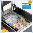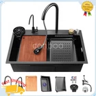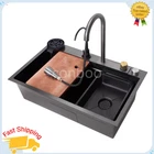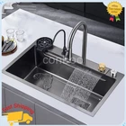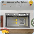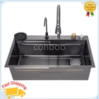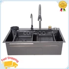 MPN: Does not apply Material: Steel Room: Kitchen Shape: Rectangle gtin13: Does not apply Number of Faucet Holes: 4 Item Height: 8.27 in Color: Black Bowl Height: 8.27 in UPC: Does not apply Assembly Required: Yes Brand: Unbranded Personalize: No Item Width: 17.71 in Item Length: 29.5 in EAN: Does not apply Bowl Depth: 8.27 in Style: Modern Mounting: Drop in Features: drain grooves design Type: Waterfall Inner Bowl Side-to-Side Width: 14.17 in Bowl Shape: Rectangular Inner Bowl Front-to-Back Length: 27.56 in