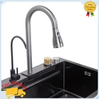 29.5''x18'' Waterfall Kitchen Sink w Pull-Out Faucet Single Bowl Multifunctional