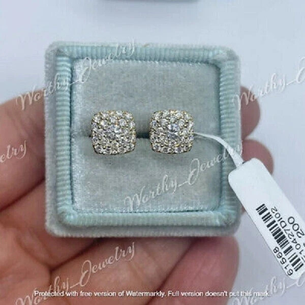 $ 39.762Ct Round Cut Moissanite Men's Stud Earrings 14K White Gold Plated Silvr