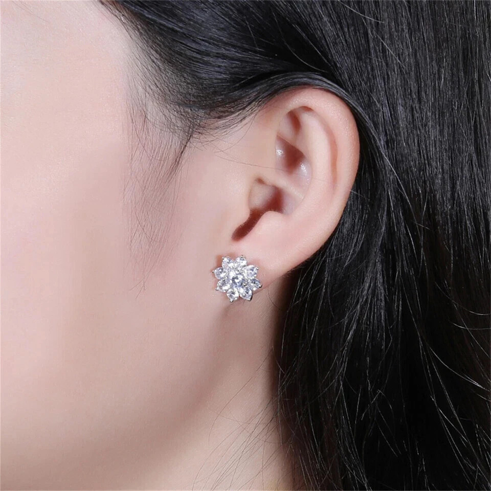$ 40.13Cluster 2.60Ct Round Cut Created Diamonds Wedding Earrings 14K White Gold Finish