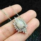 2Ct Oval Cut Lab Created Fire Opal Pendant 14K White Gold Plated Free Chain