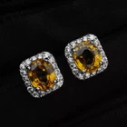 2Ct Oval Cut Simulated Citrine Unisex Christmas Gift Stud 14K White Gold Plated