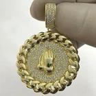 2Ct Round Cut Moissanite Praying Hand Men's Charm Pendant 14K Yellow Gold Plated