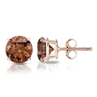 2Ct Round Cut Simulated Brown Diamond Womens Christmas Stud 14K Rose Gold Plated