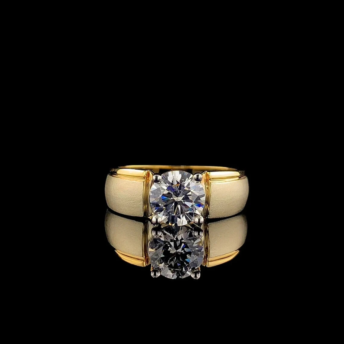 $ 115.361.2Ct Round Natural Moissanite Men's Wedding Ring in 14K Yellow Gold Over