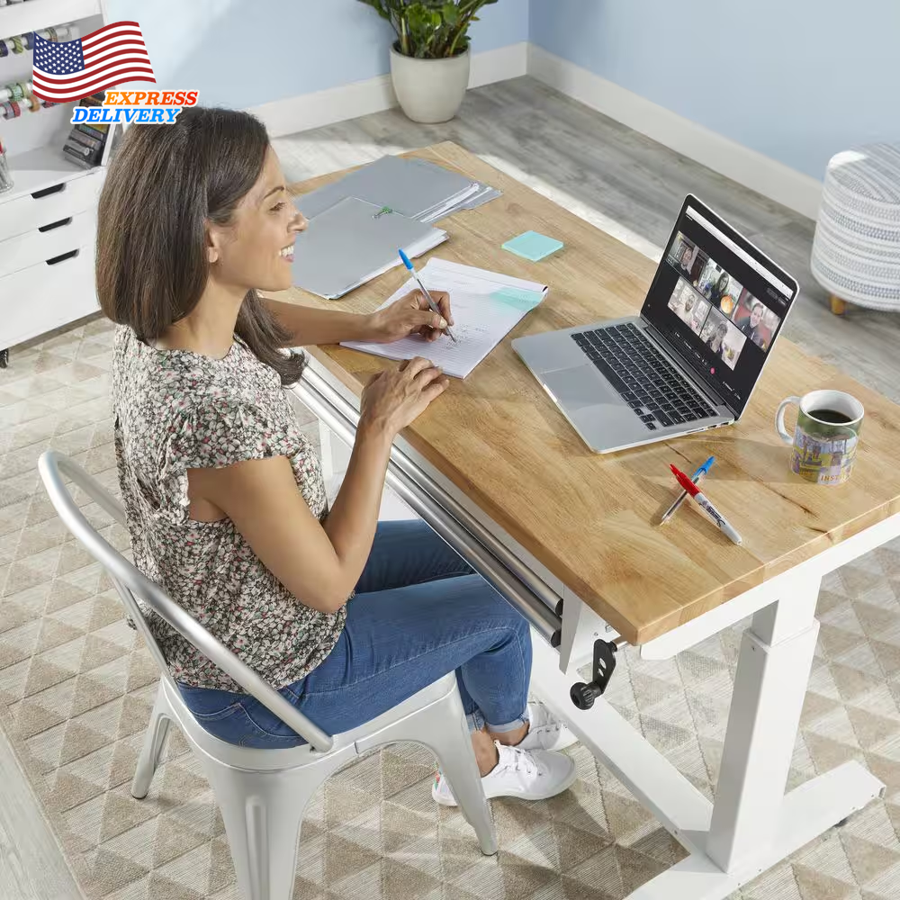 Store New Arrivals Add to Favorite View Feedback Contact 2 Drawer Adjustable Height Workbench Table with Solid Wood Top 52 In W X 24 In D Description Adjustable Workbench Height Adjustable Height Assembly Required Yes Assembly Type Full Assembly Required Color Family White Features Adjustable Height Frame Material Steel Included Drawers Number of Drawers 2 Drawers Product Weight (lb) 111.79 lb Returnable 90-Day Style Industrial Weight Capacity (lb) 300 lb Assembled Depth (in) 24.00 in Assembled Height (in) 29.00 in Assembled Width (in) 52.00 in Adjustable workbench ranges from 26 in. to 42 in. tall Top: 300 lb. weight capacity; Workbench drawers: 35 lb. capacity Can be used as a home office desk or workstation The Husky 52 in. Adjustable-Height Work Table with 2-Drawers is a multi-functional adjustable workbench with drawers work station that features a manual crank that can raise and lower the work surface. The 1.2 in. thick solid wood top offers plenty of space on the 52 in. W x 24 in. D work surface. The Adjustable-Height Work Table with drawers can be assembled with either the four, 3 in. x 1 in. casters for mobility or attach the 4 leveling feet for use as a stationary table or desk. This Husky adjustable workbench with drawers has plenty of uses around the home, office, hobby room or garage. It is designed with a 300 lbs. weight capacity and an overhang so that you can easily attach your vise grips or clamps while working on a project. This 52 in. Husky Adjustable-Height Work Table with drawers contemporary, adjustable-height feature allows you to have the flexibility to sit or stand while working. The ergonomic design could also reduce eye and back strain and boost your productivity. The crossbar support can be installed in 2 different locations, depending on your preference. Install the support at the center of the table for an open, 2-sided work area. Or install it along the back of the legs to allow you the versatility of stowing your tool storage and rolling cabinets underneath to further organize your work space. Table height adjusts from a 26 in. to 39 in. H when using the included leveling feet Table height adjusts from a 29 in. to a 42 in. H when using the included casters 3 mm steel frame construction with a powder-coated finish to resist rust and corrosion 35 lbs. load capacity drawers 3 in. x 1 in. PPR swivel casters with locking brakes allow ease in mobility 4 leveling feet can be installed to use the table as stationary work area 1.2 in. T solid woodwork surface with protective coating Multiple uses and applications Drawers: 40 in. W x 16 in. D x 2.25 in. H Assembled dimensions (approximate): 52 in. W x 24 in. D x 26 in. to 42 in. H and weighs 111.79 lbs. Packaged/shipping dimensions (approximate): 59.44 in. W x 36.41 in. D x 11.81 in. H and weighs 134.73 lbs. ABOUT US We offer the best prices around on high quality products. Our E-store includes media such as books, movies, music and games while offering electronics, toys, sporting apparel, clothing, tools, general home, garden items and more. SHIPPING We are always working hard to ensure your package arrives as soon as possible. Please understand that some factors like weather, high postal traffic, and the performance of shipping companies are outside of our control. We offer free shipping to the lower 48 states and ship within 2 business days of payment, usually sooner. We do not accept P.O. Boxes. Please provide a physical address. For shipping outside of the continental USA, we only use eBay's Global Shipping Program.The item is shipped to KY and then sent to the rest of the world. International customers are responsible for all duties and taxes. Continue to check out in order to calculate costs for shipping the item to your country. Messages regarding eBay's Global Shipping Program MUST be directed at eBay EXCLUSIVELY. RETURNS We offer a 30-Day Return Policy on items which you are not completely satisfied with. You have the option for a full-refund or an exchange of the item. No returns are available on items shipped outside of the USA. PAYMENT We accept PayPal. CONTACT US This page content is yet to come Please ad us to your favorite seller and visit again later Thank You CUSTOMER SATISFACTION We try our very best to make sure every customer is completely satisfied. If there's a problem, message us! We're happy to help. WE ACCEPT Copyright © 2021 AutoDS. | All Rights Reserved