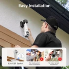 2K Light Bulb Security Cameras Wireless Outdoor, 1 Pack 5G&2.4G, White Product Details Indoor/Outdoor Usage: Outdoor Compatible Devices: All Power Source: Corded Electric Connectivity Protocol: Wi-Fi Controller Type: SmartThings Mounting Type: Wall Mount Video Capture Resolution: 2k Color: White Number of Items: 1 Included Components: Camera Item dimensions L x W x H: 3.48 x 8.9 x 3.48 inches Batteries Required?: No Video Capture Format: MPEG-4 Unit Count: 1.0 Count Product Dimensions: 3.48 x 8.9 x 3.48 inches Item Weight: 13.1 ounces Item model number: BLC53P Manufacturer: Shenzhen CTV Int Cloud Technology Co., Ltd Recommended Uses For Product: Indoor/Outdoor Brand: TKENPRO Model Name: BLC53P Connectivity Technology: Wireless Special Feature: Waterproof 【5GHz & 2.4GHz WiFi and Easy Installation】The TKENPRO light bulb security camera offer seamless operation on both the 2.4GHz and 5GHz WiFi bands to matches diferent situation requirements.This provides a more stable(2.4G) and faster(5G) network connection to ensure stable and efficient video surveillance services. In addition, installing the wireless security camera is as easy as replacing a light bulb (E26/E27 Socket). 【IPX6 Waterproof Indoor & Outdoor Cam】This security cameras wireless outdoor has an excellent IPX6 waterproof rating, able to withstand temperatures from 14°F to 113°F, ensuring security camera long-term outdoor working stability. After the light bulb security camera connects to wifi, you get instant access to live footage and remote control. Ideal for living rooms, hallways, porch, doorways, backyards, indoor and outdoor. 【Human Detection and Motion Tracking】 The security cameras wireless outdoor uses AI algorithm recognition to accurately detect human bodies and send out alarm information in real time to the mobile app. In addition, automatic tracking technology can automatically track and record them within 350° panning and 90° wide viewing angle within 26 feet. 【2K HD Night Vision with Magicpix】Our wireless outdoor camera for home security provides 2K quality video and images, ensuring that you can see clear details during the day and night. The outdoor security cameras support color/smart/infrared night vision. With our exclusive Magicpix technology, night vision is amazing. 【Two-Way Audio/Multi-Device & User Share】With a built-in microphone and speaker, The light bulb camera wireless outdoor allows for two-way communication. You can talk and listen to anyone on the other side and share the security camera with family or friends. It also supports up to 128G memory cards (card not included in package) for 24/7 recording.