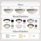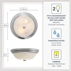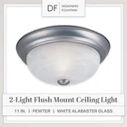 FLUSH MOUNT LIGHT COVER: This sleekly modern overhead light fixture features a durable steel construction and beautiful white alabaster glass for a professional and sophisticated aesthetic suitable for a wide range of home decors; ideal for indoor lighting fixtures VERSATILE USE: Perfect for a wide range of home settings, this round light fixture is ideal for adding illumination and a touch of class to your kitchen, bathroom, bedroom, dining room, hallway, entry way, stairwell, laundry room, closet, and much more EASY INSTALLATION: This dome light fixture includes mounting hardware to allow for quick and easy installation, and the close to ceiling light fixture also allows for easy bulb replacement DURABLE CONSTRUCTION: Our light covers are constucted with a strong and sturdy steel construction to provide long-lasting and reliable lighting, and feature white alabaster glass to add a touch of elegance and sophistication to any room SPECS: Our ceiling light fixtures measure 11.25 W x 11.25 D x 4.5 H in inches, and are suitable for use with two medium 60W LED or incandescent bulbs (Bulbs not included); flush mount ceiling lights are UL/cUL and damp location rated and backed by a 1 year warranty Pewter finish alabaster center lock glass Steel construction built to last Uses (2) 60 watt bulbs not included Add bright interior illumination and a touch of elegance to your home with our DESIGNERS FOUNTAIN ceiling mounted light fixture. Constructed with durable long-lasting steel and sleek white alabaster glass, this ceiling mounted light fixture cover is great for adding a touch of class and sophistication to your home decor, and is perfect for use in bathrooms, bedrooms, stairwells, hall ways, utility rooms, or even the entrance to your home. This interior light fixture includes the necessary mounting hardware to allow for easy installation onto ceilings, and the flushed ceiling light also allows for easy bulb replacement. Our simple light fixture measures 11.25 W x 11.25 D x 4.5 H in inches, and is suitable for use with two 60W LED or incandescent bulbs (Bulbs not included). This round ceiling light is UL/cUL and damp location rated, and backed by a 1 year warranty. Enhance your home's lighting with this elegant and contemporary light fixture.