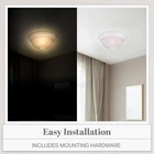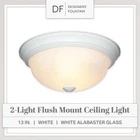 FLUSH MOUNT LIGHT COVER: This sleekly modern overhead light fixture features a durable steel construction and beautiful white alabaster glass for a professional and sophisticated aesthetic suitable for a wide range of home decors; ideal for indoor lighting fixtures VERSATILE USE: Perfect for a wide range of home settings, this round light fixture is ideal for adding illumination and a touch of class to your kitchen, bathroom, bedroom, dining room, hallway, entry way, stairwell, laundry room, closet, and much more EASY INSTALLATION: This dome light fixture includes mounting hardware to allow for quick and easy installation, and the close to ceiling light fixture also allows for easy bulb replacement DURABLE CONSTRUCTION: Our light covers are constucted with a strong and sturdy steel construction to provide long-lasting and reliable lighting, and feature white alabaster glass to add a touch of elegance and sophistication to any room SPECS: Our ceiling light fixtures measure 13.25 W x 13.25 D x 5.25 H in inches, and are suitable for use with two medium 60W LED or incandescent bulbs (Bulbs not included); flush mount ceiling lights are UL/cUL and damp location rated and backed by a 1 year warranty Add bright interior illumination and a touch of elegance to your home with our DESIGNERS FOUNTAIN ceiling mounted light fixture. Constructed with durable long-lasting steel and sleek white alabaster glass, this ceiling mounted light fixture cover is great for adding a touch of class and sophistication to your home decor, and is perfect for use in bathrooms, bedrooms, stairwells, hall ways, utility rooms, or even the entrance to your home. This interior light fixture includes the necessary mounting hardware to allow for easy installation onto ceilings, and the flushed ceiling light also allows for easy bulb replacement. Our simple light fixture measures 13.25 W x 13.25 D x 5.25 H in inches, and is suitable for use with two 60W LED or incandescent bulbs (Bulbs not included). This round ceiling light is UL/cUL and damp location rated, and backed by a 1 year warranty. Enhance your home's lighting with this elegant and contemporary light fixture.