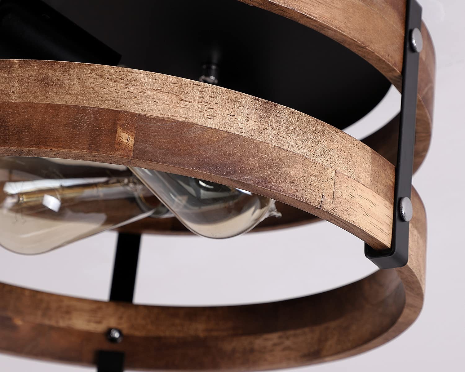 Add a touch of personality and vintage to any space with an attractive metal industrial flush mount light fixture. This versatile design blends seamlessly with a variety of home interior styles, from industrial lofts to farmhouse kitchens.Place two or three ones on your kitchen island, warehouse or hallway to create excellent lighting for the house. Imagine this attractive flush mount ceiling light offering unlimited opportunities for your personalized space. Features Product Weight:4.8LB Voltage: 110-120V Material:Metal, Wood Lamp Base:Use 2 XE26 light bulbs of your choice ,looks great with antique edison bulbs,60W max(not Included). Product Size: 12.6'' X 12.6'' X 5.9'' Instruction: Include, little assembly is required. Easy to clean and maintain Package Included 1 x Ceiling Lighting 1 x User Manual 1 x Accessories Package Return Policy If the product is damaged or defective when you receive, please don’t hesitate to contact us for return. Replacement or fully refund will be issued within 48 hours. We pursue reliable performance and our products continue to provide good value to our customers. DESIGN:Perfect combination of metal and wood cage ,with attractive rustic farmhouse style,piano paint process, beautiful and durable EASY INSTALLATION: Includes instructions and mounting hardware for easy installation IDEAL APPLICATION: This fresh and simplistic design is an elegant update for traditional and modern homes alike.Perfect for Kitchen, Hallway, Livingroom,Farmhouse, Foyer, Bedroom, indoor, Entryway QUALITY CONSTRUCTION: All the wire and hanging cord are comply with UL standard and the light fixtures are equipped with sturdy metal, you do not have to worry about aging or color fading problem BULB REQUIREMENTS: Use 2 XE26 light bulbs of your choice(Led,Incandescent or halogen),looks great with antique edison bulbs,60W max(not Included)
