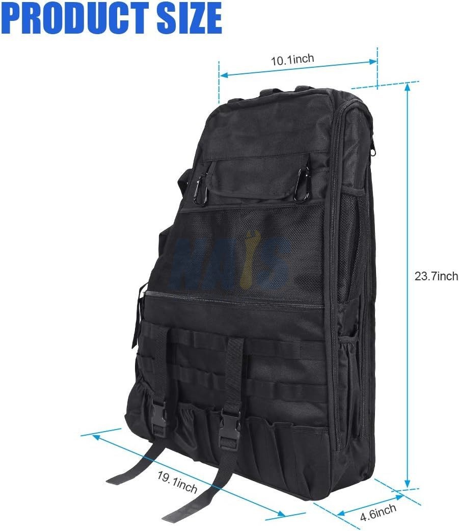 Roll Bar Saddlebag Tool Kit Storage Cargo Bags for 1997-2023 Jeep Wrangler TJ JK JL FITMENT: The Multi-Pockets TJ JK JL Storage Bags are compatible with 1997- 2023 Wrangler TJ JK JL & Unlimited JL 4-Door ( Don't fit for 2-door ) LARGE STORAGE CAPACITY: Wrangler storage bags jl jk storage Partition design separates the inside of the bag into two layers for more storage. Tool Kits, Driving licence, Cosmetic Accessories, Watch, Lipstick, Hairpin , Keys, Sun-glass, Pen, Notepads, Cellphone,MP3,Charges & Cables ,Earphones, Remote Control, SD Card, Flashlight, Mouse, Power Bank, Chewing Sugar, Wallets and More Useful tools, etc. HIGH QUALITY MATERIAL: Made of premium waterproof 600D Oxford cloth, the jk bags jl storage are sturdy and durable. 600D oxford cloth ensure long lasting durable. EASY TO INSTALL: No tools required, adjustable straps. Wrangler storage bags jl jk storage Not only can be installed in the car, you can single strap, it is an essential Multi-purpose Storage Package when go hiking camping travel. Works great and fits perfectly, and it will totally change the look of your vehicle. PACKAGE INCLUDES: 2 PCS Roll Cage Multi-Pockets wrangler storage bags jl jk storage Saddlebag. Individual jk bags jl storage Size: 23.7*19.1*4.6 inch. On Oct 30, 2025 at 10:03:36 PDT, seller added the following information: