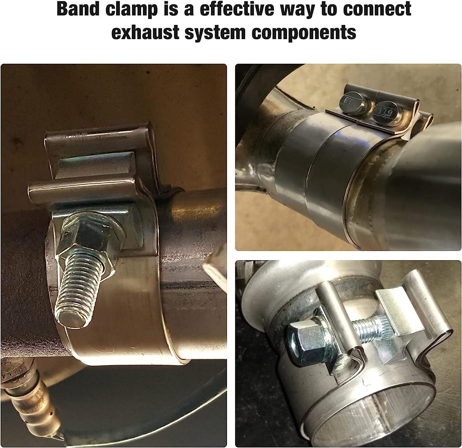 2PCS 2.5" Inch T409 Stainless Steel Narrow Band Exhaust Clamps Seal Band 2PCS 2.5" T409 Stainless Steel Narrow Band Exhaust Clamps | Seal Band For 2.5" OD‑ID Slip Fit Pipe – No Weld, Easy Install Description These 2.5" narrow band exhaust clamps provide a simple, strong, 360° sealed connection for your exhaust system— no welding required . Designed for 2.5" OD‑ID slip fit pipes , they are perfect for linking exhaust pipes, mufflers, catalytic converters, and other components quickly and cleanly. The clamp delivers even 360° clamping force for a tight, leak‑proof seal. For best results, apply exhaust sealant to the pipe before installation. Features No welding design – easy to install & remove 360° even force distribution for reliable sealing Torque: 63 N·m Ideal for pipes, mufflers, catalytic converters Specifications Condition: 100% Brand New Size: 2.5" (fits 2.5" OD‑ID slip fit pipe) Band Material: T409 Stainless Steel Hardware: Zinc‑plated M10 bolt & nut, steel gasket, aluminum alloy I‑block Strap width: 1.25" (1.22" / 31mm) Band thickness: 1/16" (0.0625") Height: 3 27/32" (3.84375") Package Includes 2 × 2.5" Narrow Band Exhaust Clamps Note If you have any questions, please feel free to contact us. Please contact us before leaving neutral/negative feedback. We will provide a satisfactory solution.