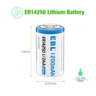 Product Description 【Compatible】 EBL 1/2 AA size ER14250 lithium batteries compatible with Dog Collars and electric meters, Home security systems, baby movement monitors, and many more. 【Replacement For】 1770-XZ, 3B26, 418-0076, 60-0576-100, 6ES5-980-0MA11, 742-0011, 922-1262, ER3, ER3S, ER4, LS14250, LS3, T04/41, T04/51, TL-2150, TL-2150/S, TL-2151, TL-5101, TL-5112, TL-5151, TL-5151S, TL2150, TL2151, TL5101, TL5112, TL5151, TL5151S, VL1/2AA, 1771-DB Series, 1772-LW Series B, 1772-LW Series C, 1772-LW Series D, 1772-LWP Series B, 1772-LWP Series C, 1772-LWP Series D, 1772-LX Series A, 1772-LX Series C, 1772-LX Series D,1772-LXP Series B, 1772-LXP Series C, 1772-LXP Series D, 1772-LZ, 1772-LZP, 1770-XZ B-2/17 Series, C-2/16, C-2/17 Series, D-2/16, D-2/17 Series, MINI-PLC-2/16, MINI-PLC-2/17. 【Safe to Use】 Safe and reliable, The batteries are produced according to the IEC standard, can give optimum performance at temperatures as low as -55 ° C or as high as 85 ° C. 【Self-discharge】 Yearly self-discharge less than 1%, can be stored up to 10 years, store the battery in a cool, dry, and well-ventilated area. Specification Battery Size : 1/2 AA (ER14250) Brand : EBL Voltage : 3.6V Weight of single cell : 10.1±1g/0.36oz Battery Type : Lithium Rechargeable : No Capacity : 1200mAh Dimensions of single cell : (14.5±0.4)*(25.5±0.5)mm Package 2/4 x batteries
