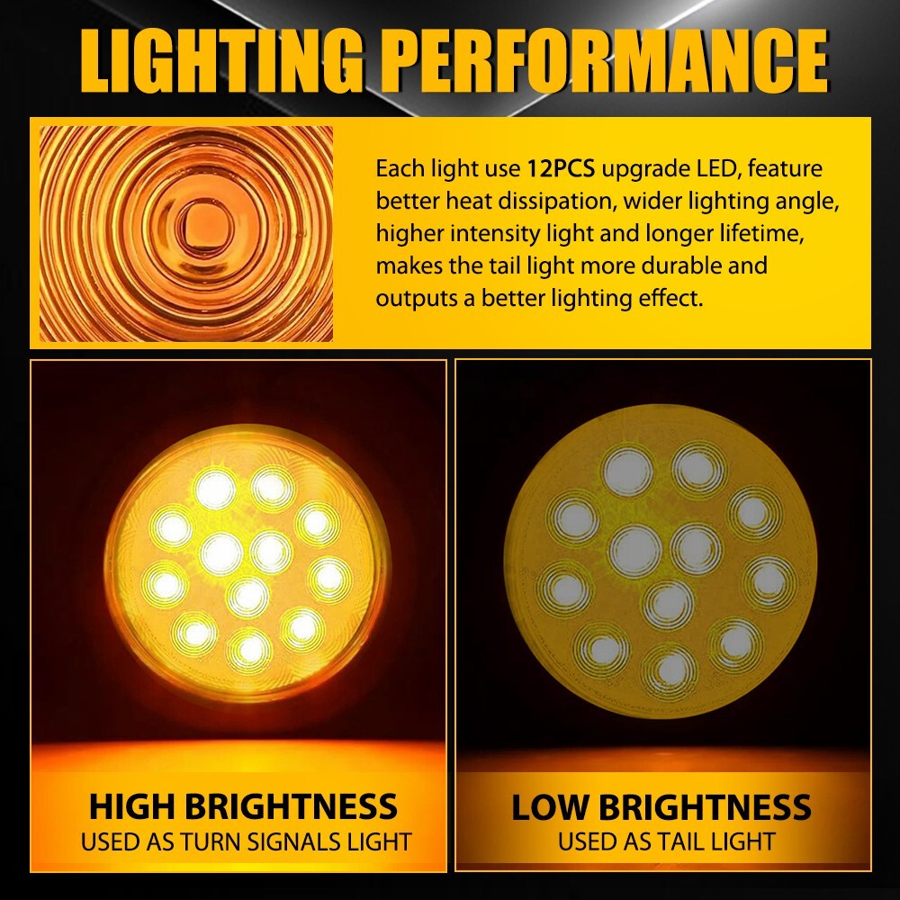 Specification Light color:Amber Shell diameter:4 inches Material:ABS+PC+Rubber+Metal LED quantity:12LED Voltage:12v Waterproof grade:IP67 Service life:50000h+ Features: *Upgraded LED: Each lamp consists of 3030 SMD LED chips with wider lighting angle and better heat dissipation. It is 3 times brighter than other products. *Waterproof: The tail light is highly silicon sealed with an IP67 waterproof rating, which works even under extreme conditions such as rain and snow. *Easy to install: Easy installation with direct replacement, other modifications are not required. *Unique design 2PCS 4"12 LED Rear Tail Light Brake Stop Reverse Kit For for Truck Trailer Amber Specification Light color:Amber Shell diameter:4 inches Material:ABS+PC+Rubber+Metal LED quantity:12LED Voltage:12v Waterproof grade:IP67 Service life:50000h+ Features: *Upgraded LED: Each lamp consists of 3030 SMD LED chips with wider lighting angle and better heat dissipation. It is 3 times brighter than other products. *Waterproof: The tail light is highly silicon sealed with an IP67 waterproof rating, which works even under extreme conditions such as rain and snow. *Easy to install: Easy installation with direct replacement, other modifications are not required. *Unique design The groove inside the ring has been upgarded, adding three bumps to make the connection between the ring and the taillight tightly.These help the tailights not to fall out and can be firmly fixed the seal ring installed on the mounting bracket.You don't need to worry about the loose lights or wires anymore! *Connection White wire connects to negative. Red wire connects to amber light with high brightness Black wire connects to amber light with low brightness *Functions It can be used as running lights, brake lights, taillights and so on. *Wide application: Universal Fits All vehicles with 12V Power Supply such as car, truck, trailer, Semi Trailer, Semi Trucks, boat, flatbed, bus, lorry, van, caravan, camper, RV Jeep etc. Note: Please check the detail information carefully before purchasing. Your satisfaction is our utmost concern, please feel free to contact us for any questions and concerns. Package Include: 4Inch Tail Lights w/ Mounting Bracket*2 Item Specifics Brand AUXITO Lens Color Amber Light Color Amber Manufacturer Part Number Does Not Apply Material ABS PC Placement on Vehicle Rear Diameter 4 inches Voltage 12 V Warranty 1 Year Waterproof IP67 Package Include tail light*2 Lighting Technology LED Housing Color Black Type Tail Light Assembly Items Included Bulbs Features Sealed Assembly Vintage Car Part No Mounting Style Screws Performance Part Yes Universal Fitment Yes Manufacturer Warranty 1 Year Finish Smooth Functions running lights, brake lights, taillights and so on Model Fits All vehicles with 12V Power Supply Payment We can accept payment by credit, debit, and gift cards; Apple Pay, Google Pay, PayPal, and PayPal Credit. Shipping 1. All items will be shipped in 24 hours after receiving your payment . 2. We ship this item to US only via USPS first class mail. It usually takes 3-5 working days to deliver. Returns 1. We offer 60 days return policy. 2. Please contact us within 60 days from the date you receive your package if you have any questions with the products . 3. Refund will be sent after we got your returned package. 4. All returned items should be in the original packaging with tracking number. Contact Us We work from Monday - Saturday 9:00AM - 6:00PM PST, but we will reply you once we get your message .There will be some delay on response if you send message or E-Mail on Sunday. DESCRIPTION PAYMENT SHIPPING RETURN POLICY CONTACT US Hot item Help & Info Payment Policy Shipping Policy Return Policy FAQ About Us 2PCS 4"12 LED Rear Tail Light Brake Stop Reverse Kit For for Truck Trailer Amber Specification Light color:Amber Shell diameter:4 inches Material:ABS+PC+Rubber+Metal LED quantity:12LED Voltage:12v Waterproof grade:IP67 Service life:50000h+ Features: *Upgraded LED: Each lamp consists of 3030 SMD LED chips with wider lighting angle and better heat dissipation. It is 3 times brighter than other products. *Waterproof: The tail light is highly silicon sealed with an IP67 waterproof rating, which works even under extreme conditions such as rain and snow. *Easy to install: Easy installation with direct replacement, other modifications are not required. *Unique design The groove inside the ring has been upgarded, adding three bumps to make the connection between the ring and the taillight tightly.These help the tailights not to fall out and can be firmly fixed the seal ring installed on the mounting bracket.You don't need to worry about the loose lights or wires anymore! *Connection White wire connects to negative. Red wire connects to amber light with high brightness Black wire connects to amber light with low brightness *Functions It can be used as running lights, brake lights, taillights and so on. *Wide application: Universal Fits All vehicles with 12V Power Supply such as car, truck, trailer, Semi Trailer, Semi Trucks, boat, flatbed, bus, lorry, van, caravan, camper, RV Jeep etc. Note: Please check the detail information carefully before purchasing. Your satisfaction is our utmost concern, please feel free to contact us for any questions and concerns. Package Include: 4Inch Tail Lights w/ Mounting Bracket*2 Payment Shipping Returns Contact Us We can accept payment by credit, debit, and gift cards; Apple Pay, Google Pay, PayPal, and PayPal Credit. 1. All items will be shipped in 24 hours after receiving your payment . 2. We ship this item to US only via USPS first class mail. It usually takes 3-5 working days to deliver. 1. We offer 60 days return policy. 2. Please contact us within 60 days from the date you receive your package if you have any questions with the products . 3. Refund will be sent after we got your returned package. 4. All returned items should be in the original packaging with tracking number. We work from Monday - 