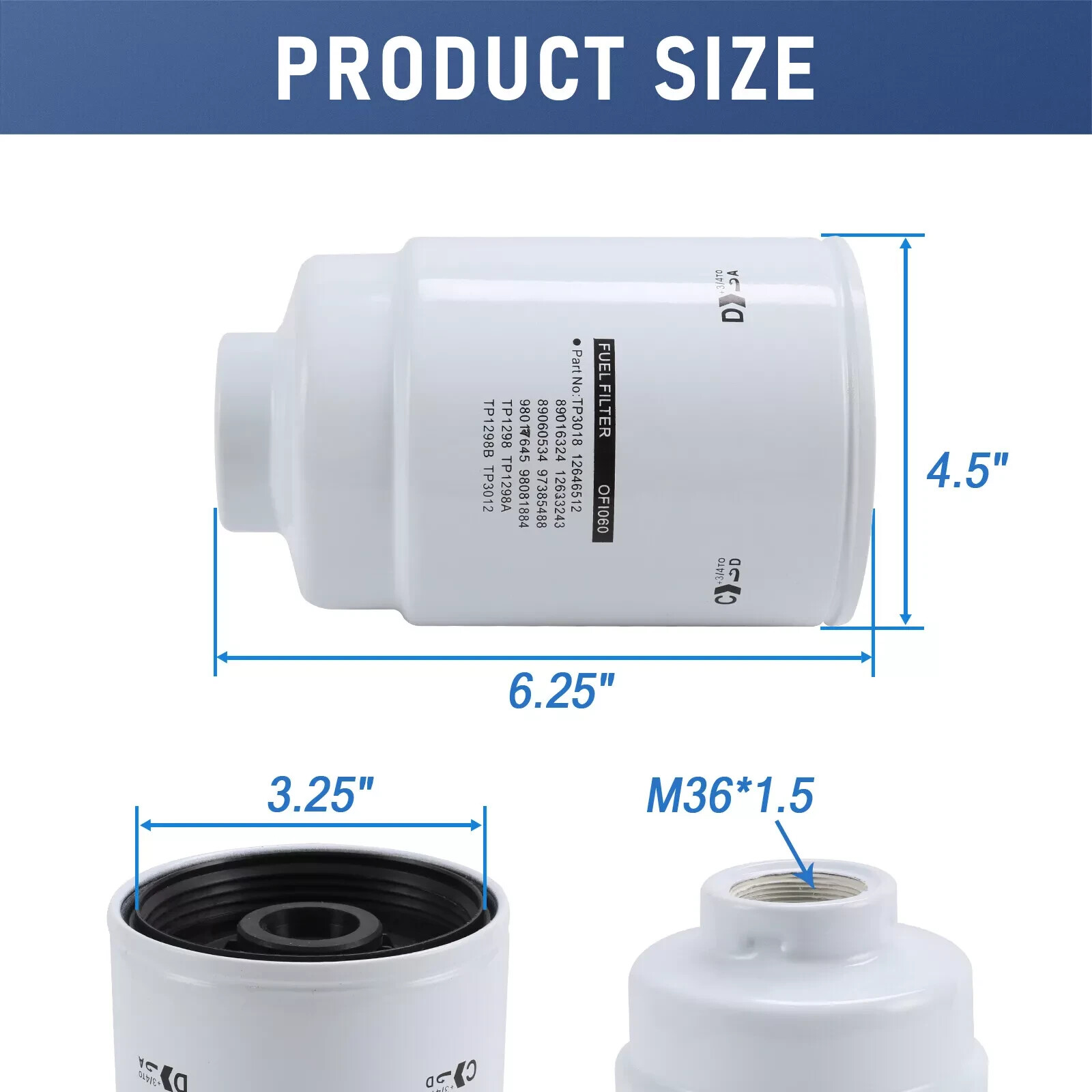 REPLACE OE#: TP3018, TP3012, 12664429, 12633243, 33960XE, LFF6012. Comes with quality rubber o-rings for better sealing Fitment: (Compatibility is just for reference, please confirm your OE number Before Purchasing.) its Vehicles with 6.6L Duramax Diesel For CHEVROLET EXPRESS 2500 2012-2016 For CHEVROLET EXPRESS 3500 2012-2016 For CHEVROLET EXPRESS 4500 2012-2016 For CHEVROLET SILVERADO 2500 2001-2016 For CHEVROLET SILVERADO 2500 CLASSIC 2007 For CHEVROLET SILVERADO 3500 2001-2016 For CHEVROLET SILVERADO 3500 CLASSIC 2007 For GMC SAVANA 2500 2012-2016 For GMC SAVANA 3500 2012-2016 For GMC SAVANA 4500 2012-2016 For GMC SIERRA 2500 2001-2016 For GMC SIERRA 2500 CLASSIC 2007 Package Included: 2X Fuel Filter